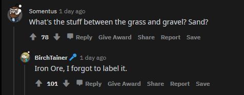 Many players were shocked to realize how uncommon Gravel was in this chunk. It is not uncommon for players to run into a giant vein of Gravel when they don't have a shovel. Also shown is an amazing subreddit that players are recommended to check out.