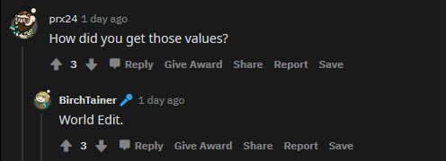 Some players were curious as to how the OP got their block information. It is then revealed that World Edit gives players the ability to know this info. This is great information for someone who wants to take a bigger sample size for a study.