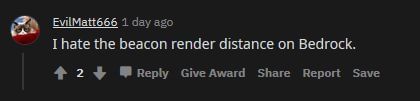 Meanwhile, this commenter expressed his discontent with the Beacon render distance on the Minecraft Bedrock Edition.