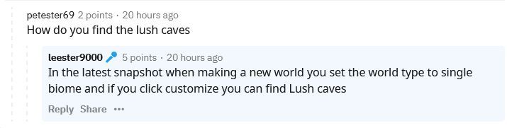 The OP then travels back to the initial platform, showcasing his fairytale land from another angle as the video clip ends. The OP has decided not to respond to most comments on Reddit, only explaining how he found the Lush Caves biome.