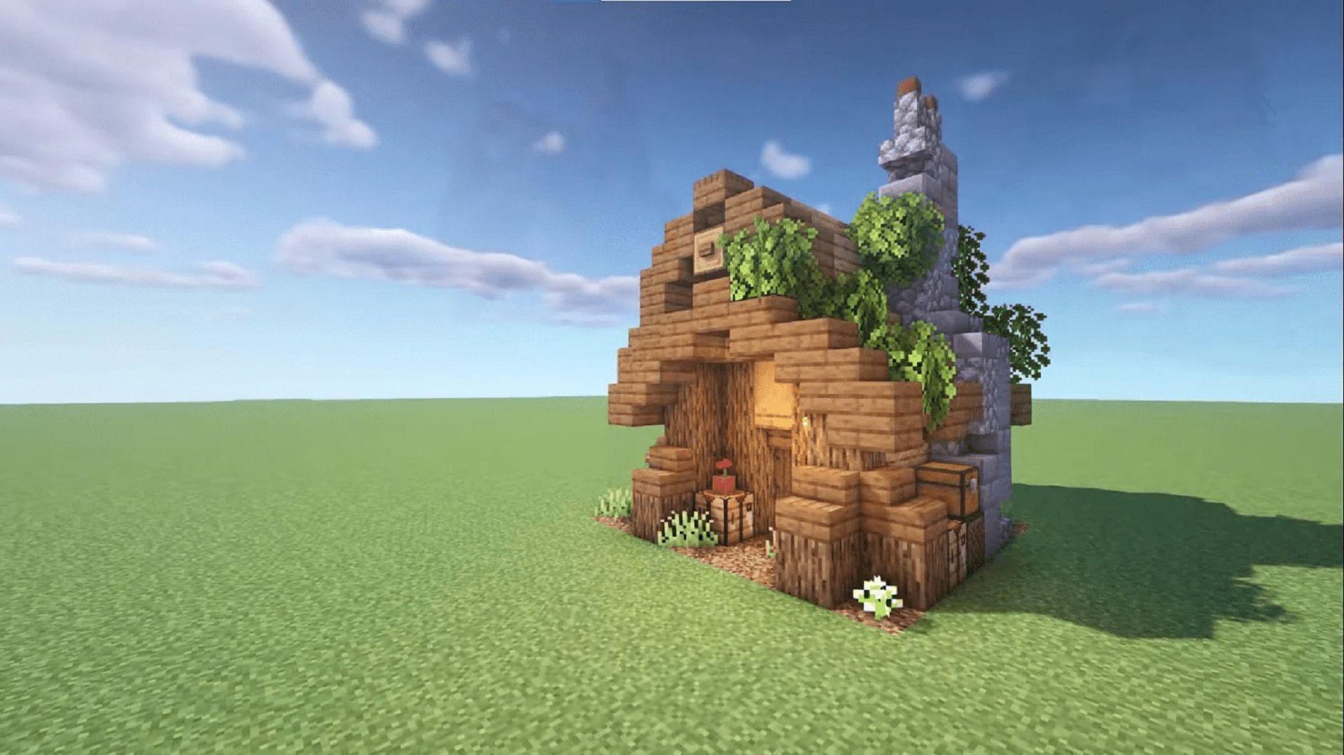 While it's only 8x8 blocks in dimensions, this compact starter house looks exceptional. Combining wood planks, cobblestone, and a few leaf blocks for a rustic quality, this house contains everything players need for a survival world.