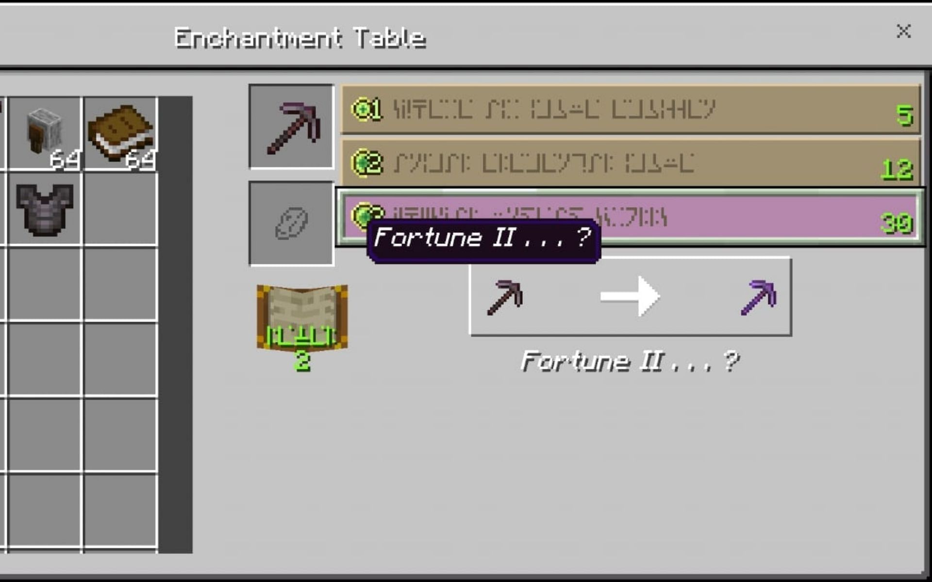 A Fortune III pickaxe when used to mine diamonds can drop as much as four diamonds from just one ore. This enchantment is one of the most useful enchantments when it comes to mining, especially in the initial period of the game when resources are scarce.