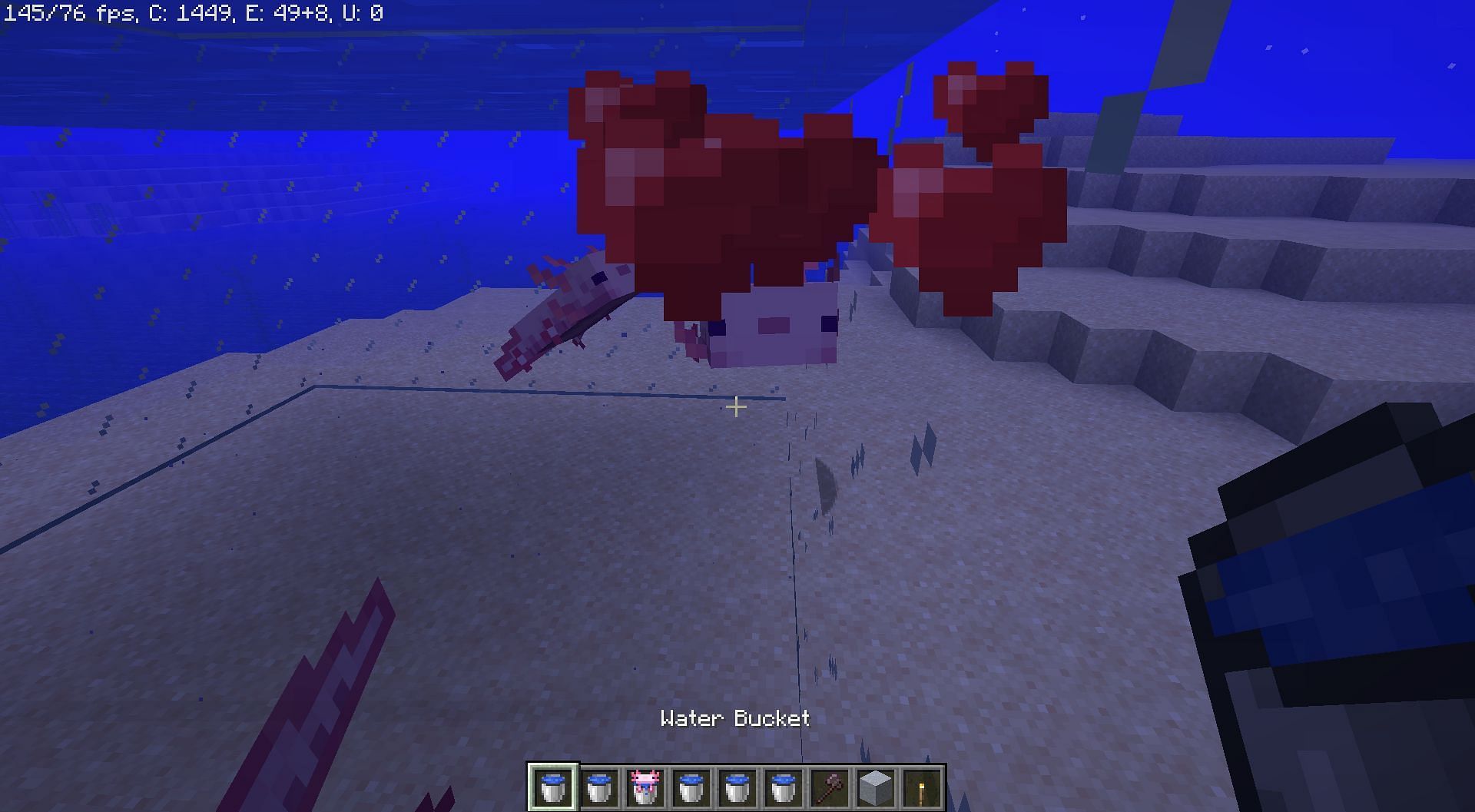 While this is not the traditional or natural way to find one of these rare mobs, this is certainly the easiest way to get the rare variant of Axolotl. The sad part is, the easiest way to get the mob is by summoning the mob through commands.