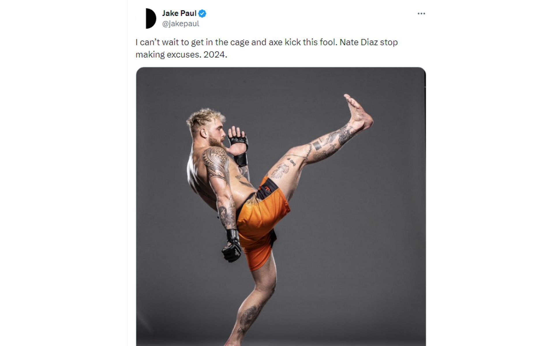 "I can’t wait to get in the cage and axe kick this fool. Nate Diaz, stop making excuses. 2024."