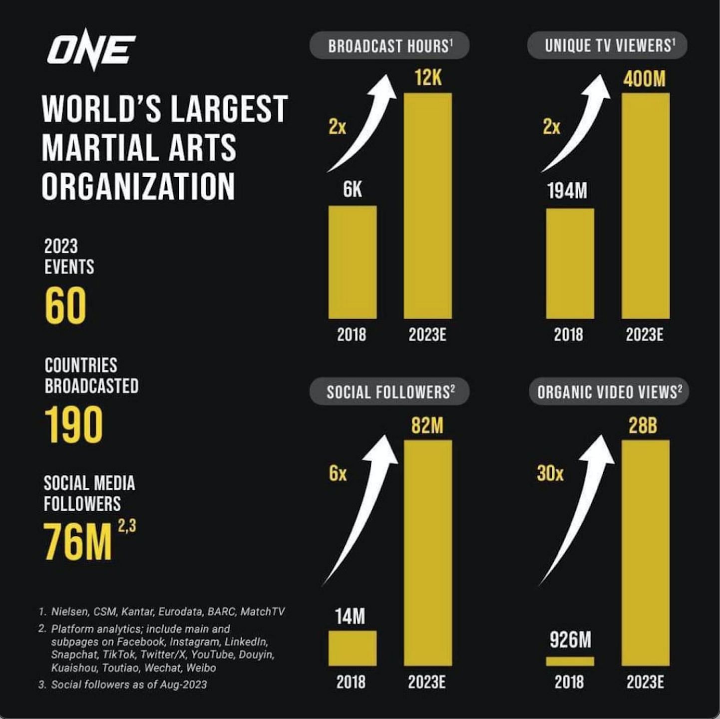 Per the analytics from the data and market measurement firm, ONE’s viewership metrics skyrocketed to a triple-digit percentage this year. For reference, ONE had 20 live events in 2022, which bumped to 60 massive events in 2023.
