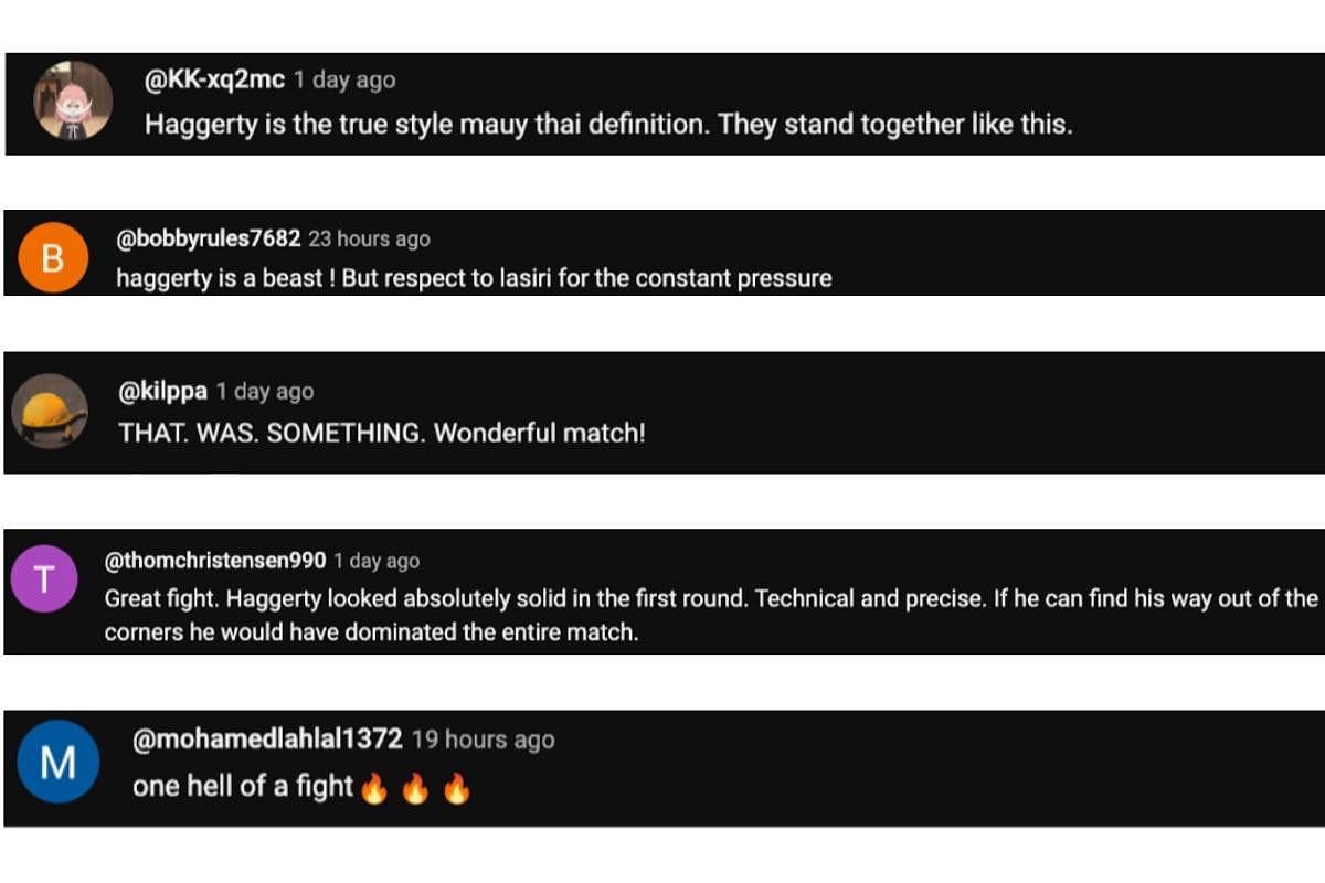 "Great fight. Haggerty looked absolutely solid in the first round. Technical and precise. If he can find his way out of the corners he would have dominated the entire match."