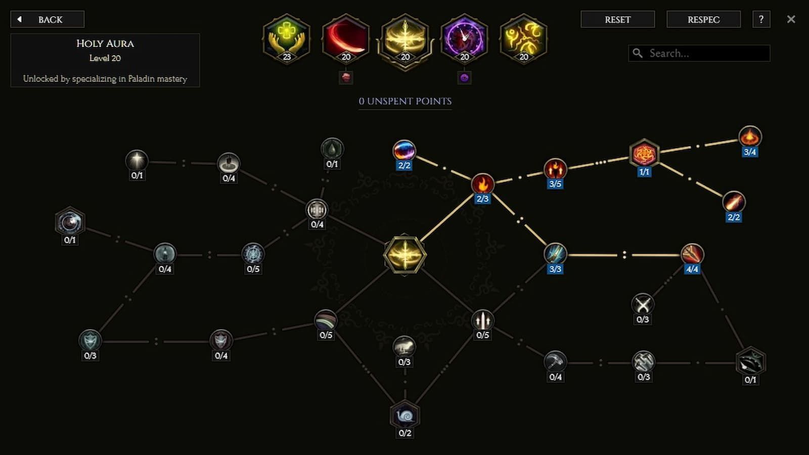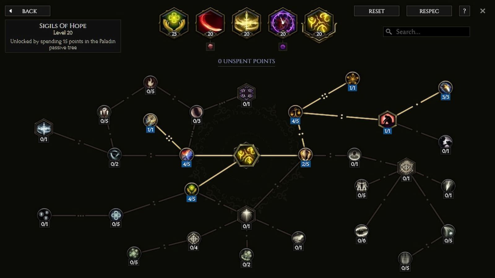The following should be your Passive skill tree setup for the Sentinel (base) and Paladin (Mastery) skill trees: