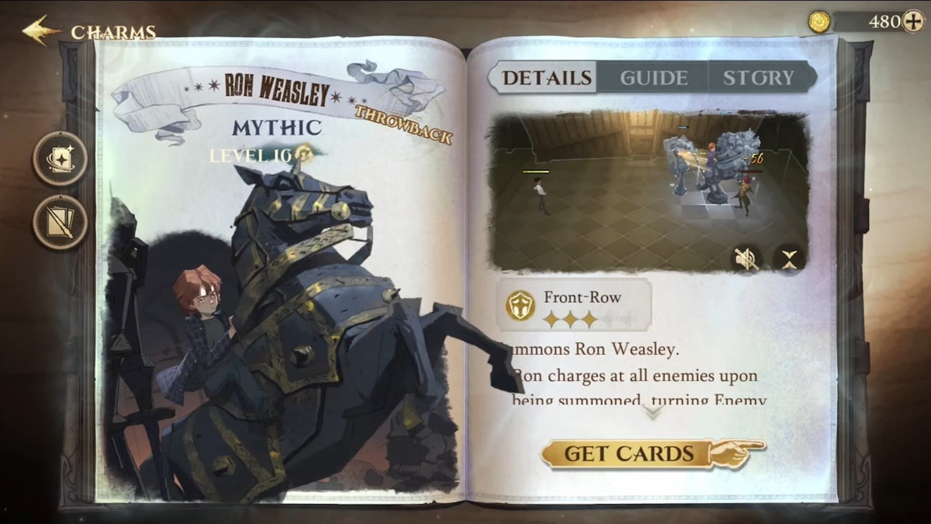 As with other Mythic and Dark cards in Harry Potter Magic Awakened, acquiring the Ron Weasley card is difficult but lucrative. You will need Ruby Keys to draw a card from the Magical Studies tab, where you have a slim chance of 0.616% of drawing Ron Weasley. This card is guaranteed to be obtained upon the 30th and 60th draw.