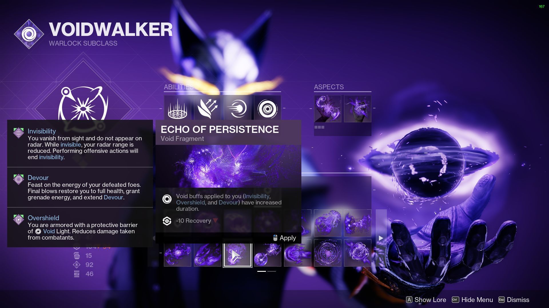 With the arrival of Void 3.0 in Destiny 2, the aspects and fragments were introduced for the light subclasses. This rework offered many opportunities for the players to make more specific and harmonious builds according to their playstyle. With the help of Devour, Void Overshield, and Invisibility, Voidwalker Warlocks became more mighty than ever before.