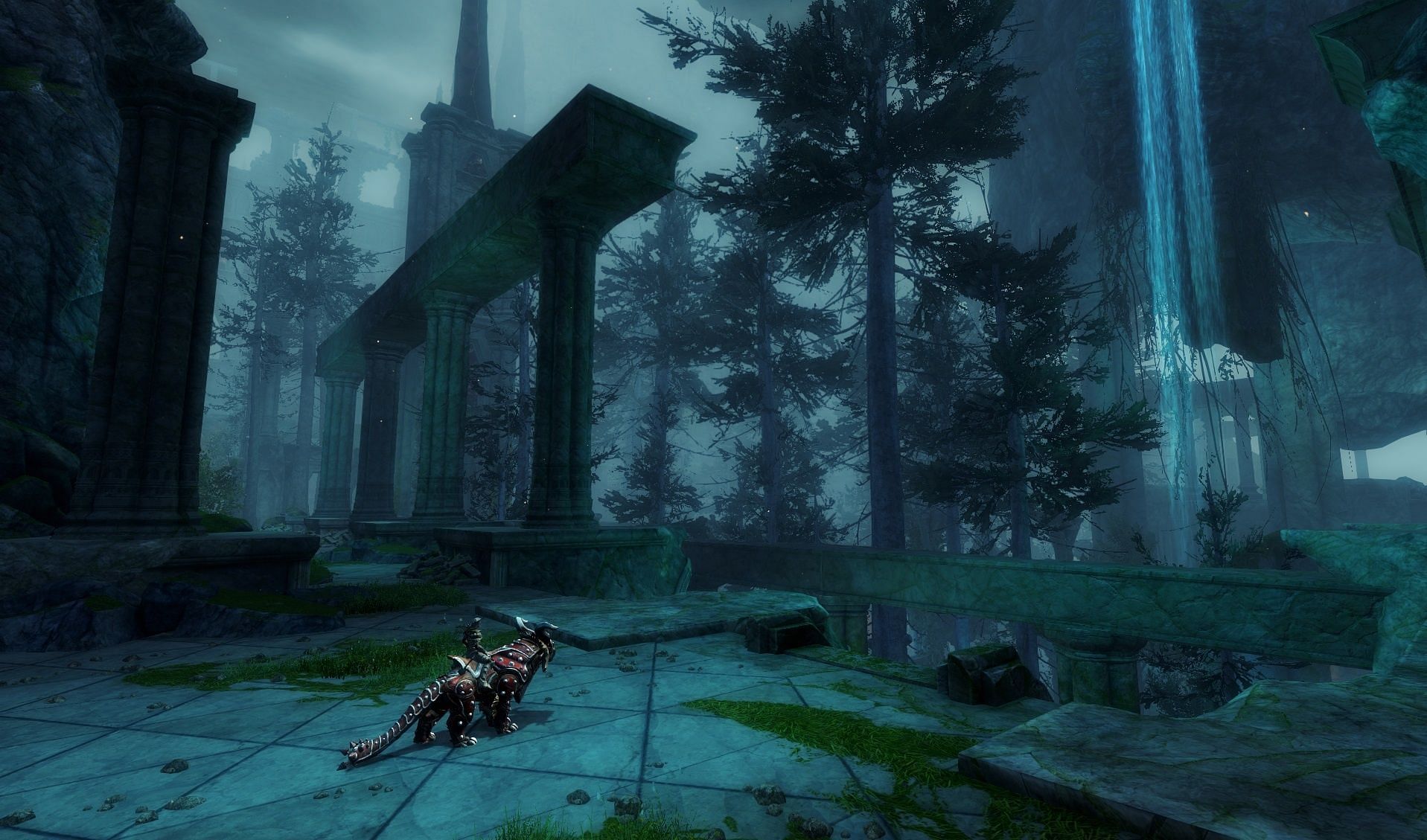 The new zone of Mistburned Barrens borders Bava Nissos. It is an impenetrable magical dead zone filled with Spectral Agony, a form of tormenting magic heavily utilized by the Mursaat. Our goal is to scout the Mistburned Barrens and find a way into the city without using Spectral Agony. It is an area that is dark and foreboding, with gargantuan stone structures that hide dark memories and darker enemies.