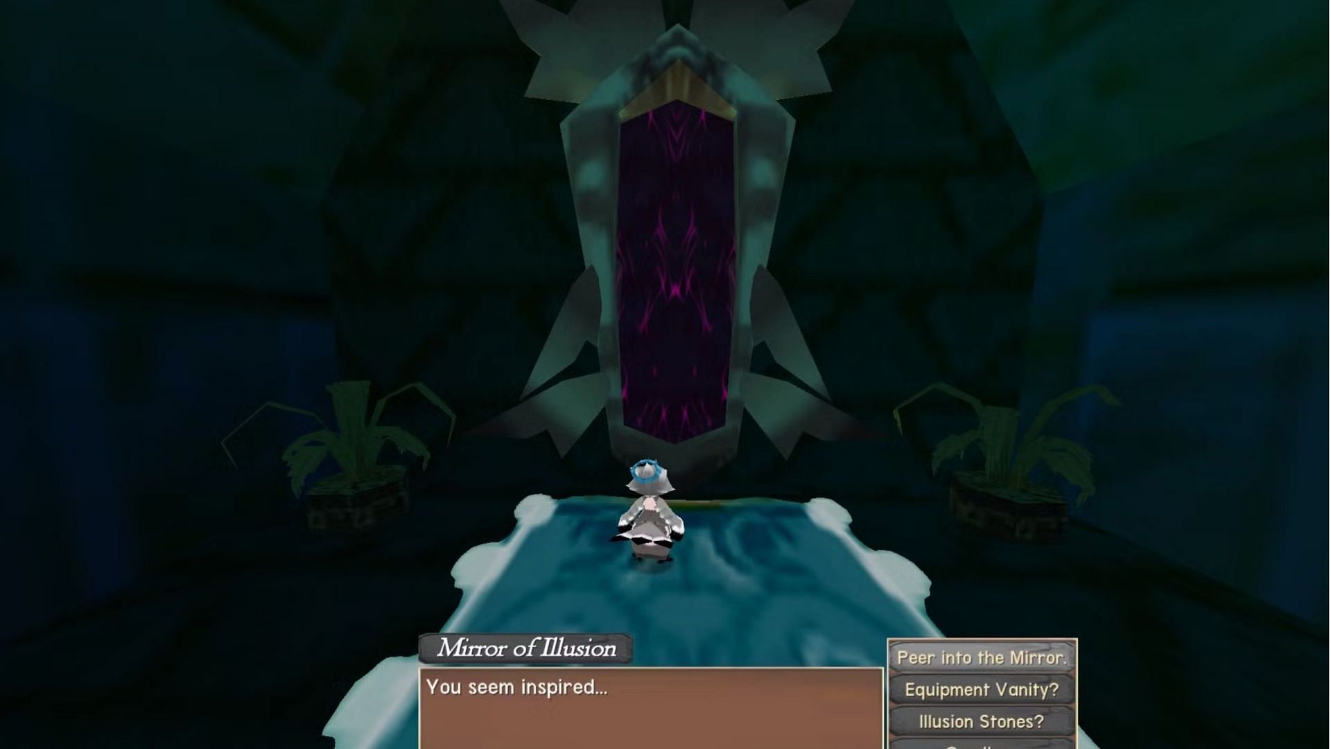 Head to the back side of the building, and you will encounter a purple rectangular structure on the wall, which is the Mirror of Illusion. However, if you interact with it, the game will ask you for one of the in-game materials/currencies that will allow you to change your appearance. This currency is the Illusion Stone, obtainable via various means.