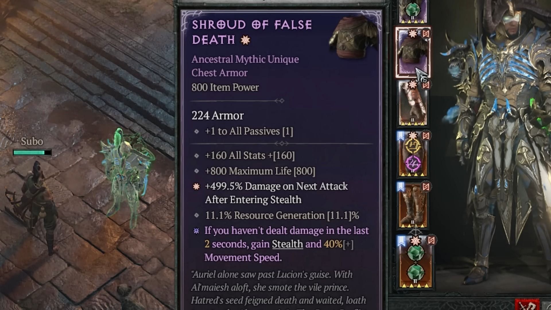 The Shroud of False Death is a Mythic Unique chest armor available to all classes in Diablo 4. This equipment is highly recommended for all Stealth builds.