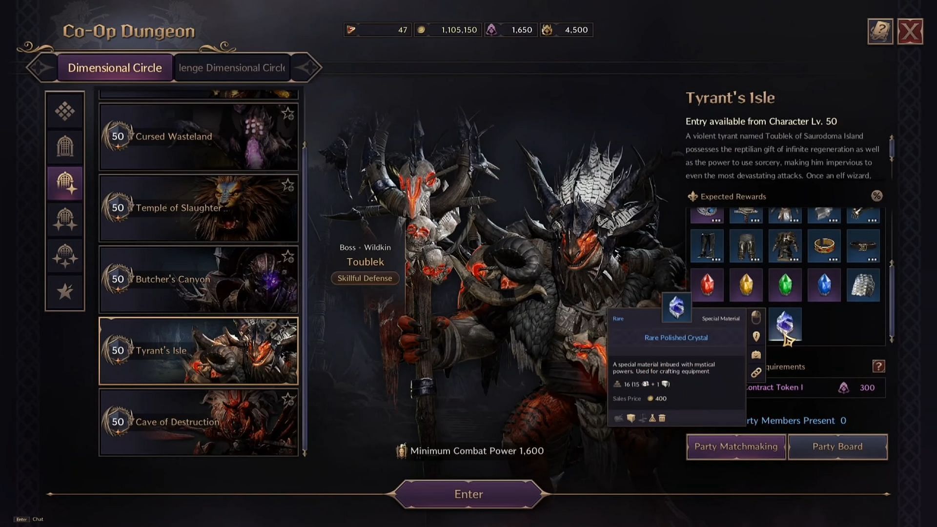 - Dungeons: If you like exploring creepy and narrow spaces, Dungeons are a great way to get Polished Crystal. The Cave of Desperation, the Specter’s Abyss, and the Roaring Temple are good places to have a good old-fashioned dungeon crawl with friends. Complete the Conquests in these locations and take out the hordes of enemies to be rewarded handsomely.