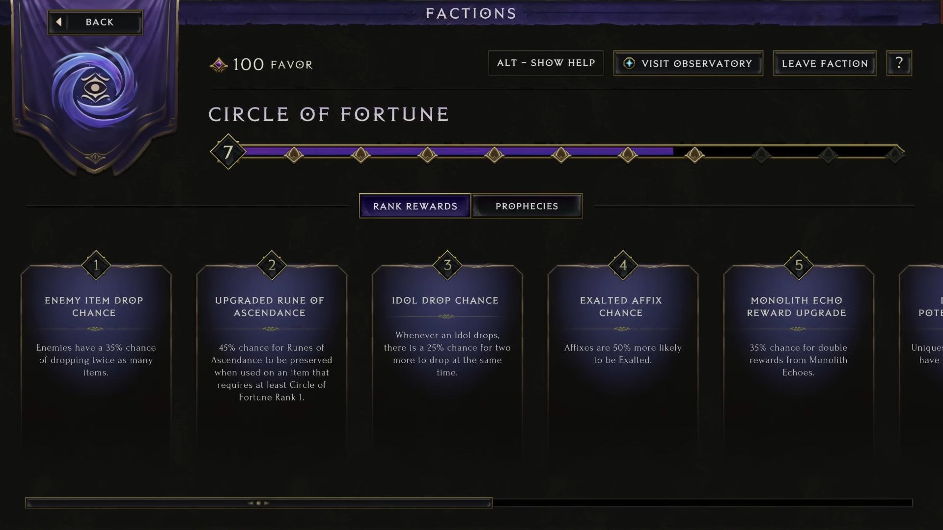 - Rank 10: Upgrade for Prophecy Rewards. Prophecy-related items are repeated.
