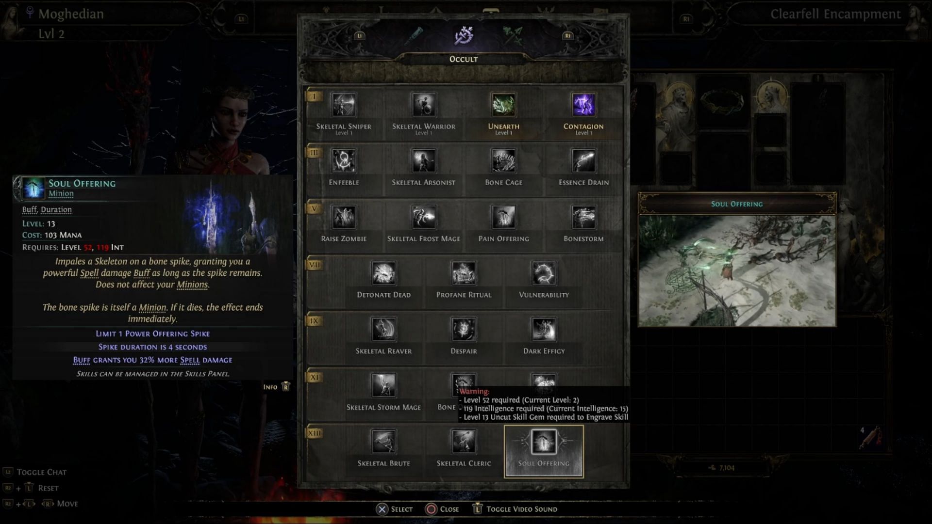 - Soul Offering: Impales a Skeleton on a bone spike, granting you a powerful Spell damage Buff as long as the spike remains. Does not affect your Minions. The bone spike itself is a Minion. If it dies, the effect ends immediately.