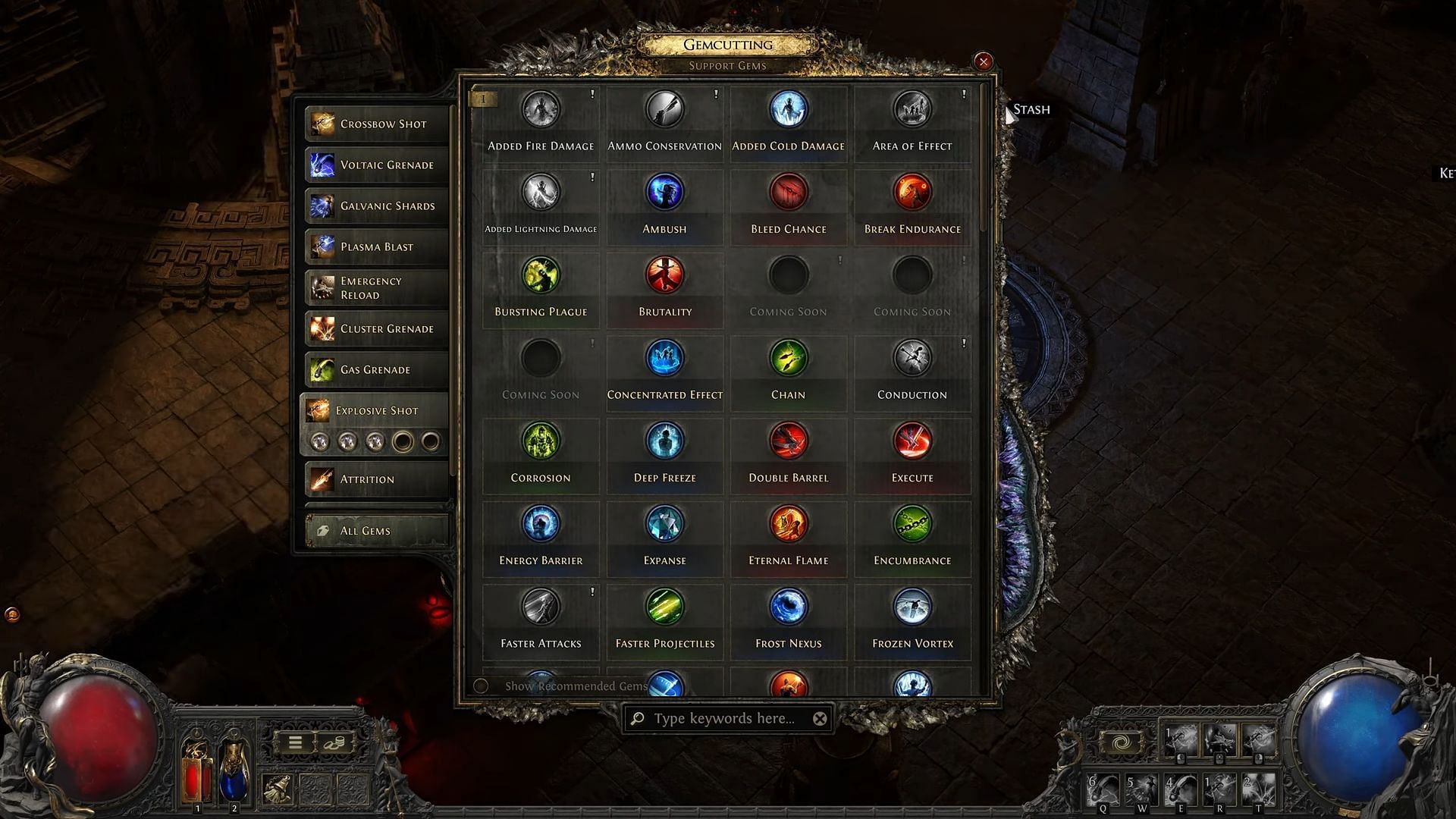 Spirit Gems are interesting because these will use a new resource called Spirit to maintain persistent buffs, instead of Mana. It's unsure whether Auras are returning from Path of Exile, but Trigger Gems like Cast on Freeze, and certain functionality-modifying Gems like Blasphemy will use Spirit.