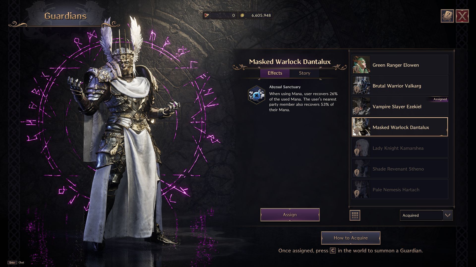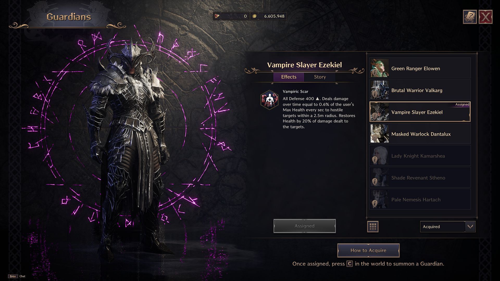 The first Guardian, Vampire Slayer Ezekiel, is obtained during the Pledge Loop adventure quest in Chapter 5: A Sacred Pledge of Blood. Players can unlock more Guardians through various Codex Exploration quests. These Guardians are involved in the region's lore and are often important past or present-time characters.