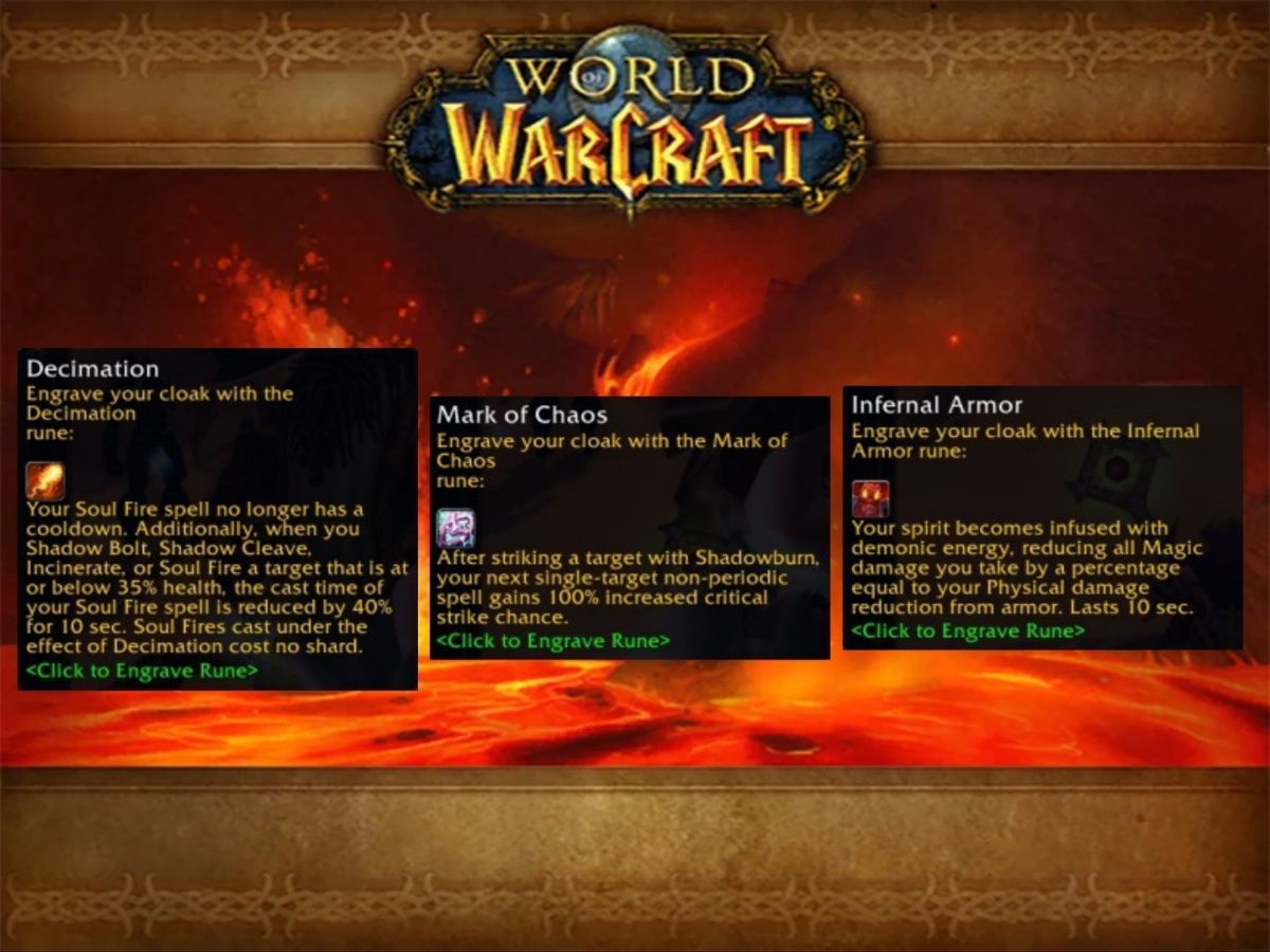 I’m a big fan of Mark of Chaos for them. Infernal Armor is a great tank rune, though, and I think Decimation could be a very powerful Rune as well. Things are looking up for the fans of powerful demons in WoW Classic SoD Phase 4.
