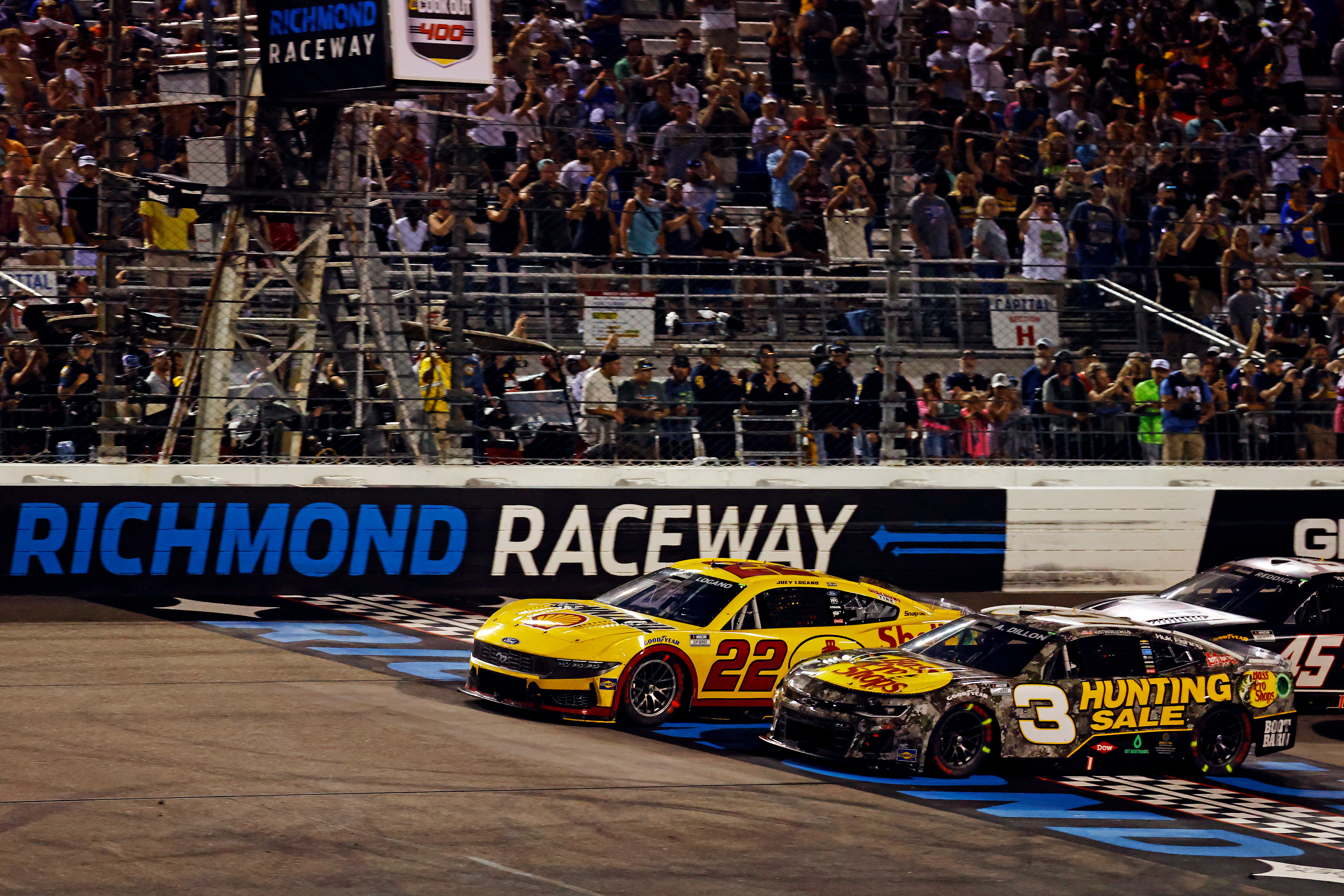 Moments after the Overtime at Richmond, Logano and Dillion came side-by-side and raced to the Checkered Flag. However, with a superior pass, Logano sped past Dillion and advanced to have a car length between him and the latter.
