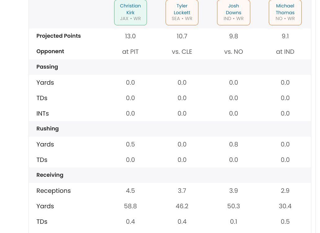 Unless Thomas can increase his output, despite his encouraging usage numbers, he should be avoided in fantasy lineups. He has finished outside of the top 30 players in all but one game this season, when he ranked WR22 last week.