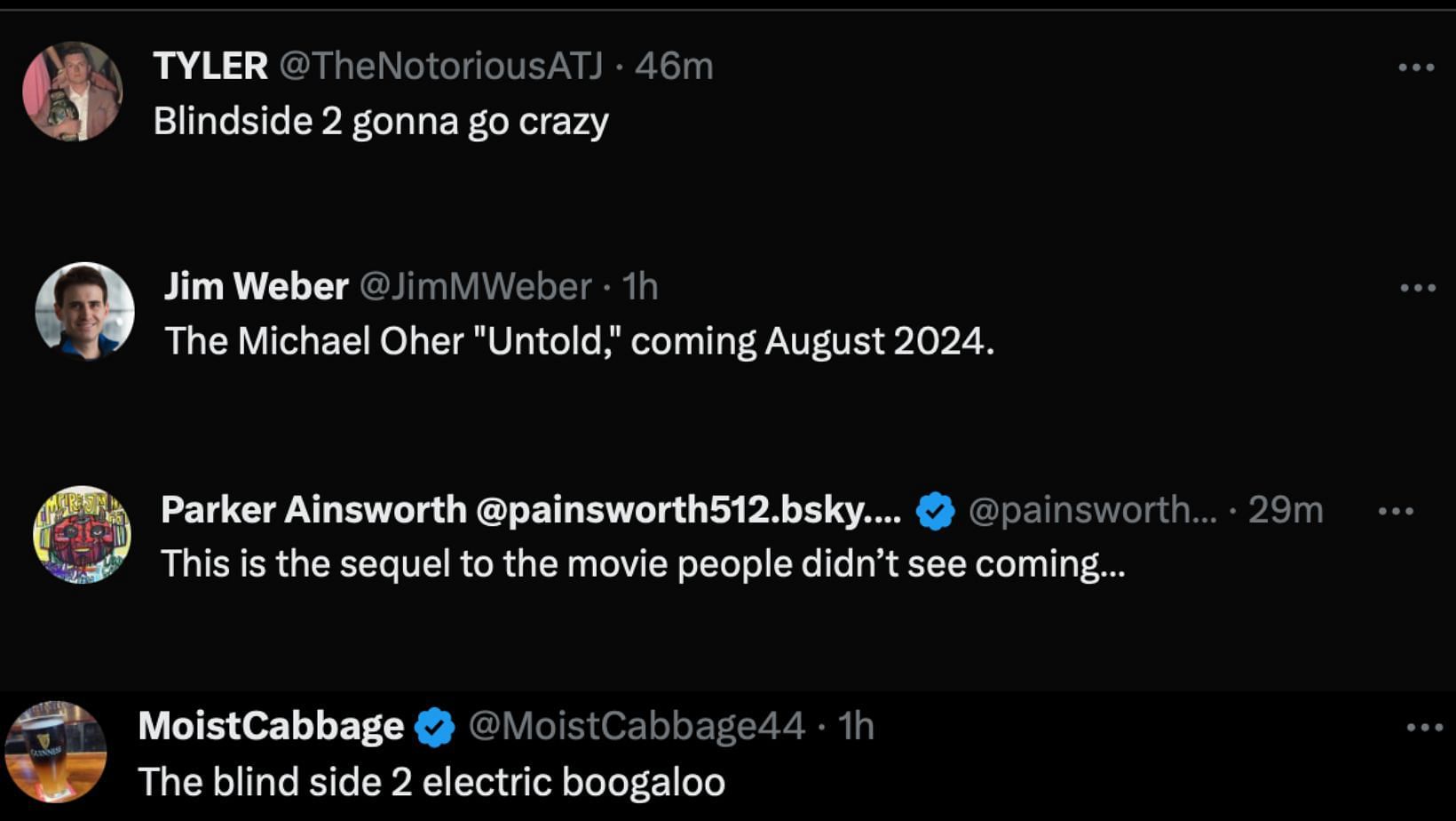 Other fans commented that 'The Blind Side' could be in store for a sequel following Michael Oher's recent allegations:
