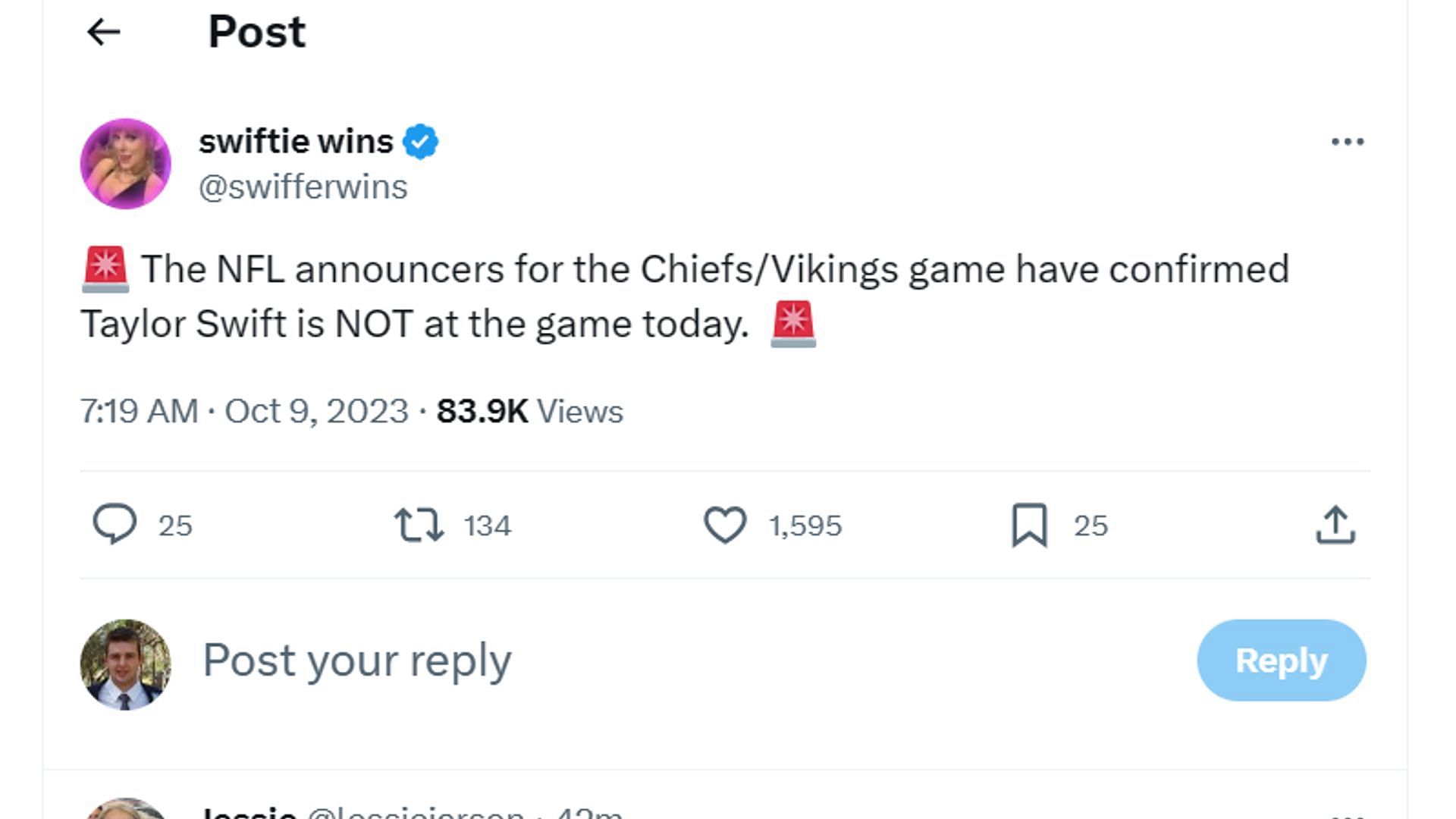 In an odd turn of events, the league put all the effort into looking for Swift, and it was then revealed that she wouldn't be at the game at all.