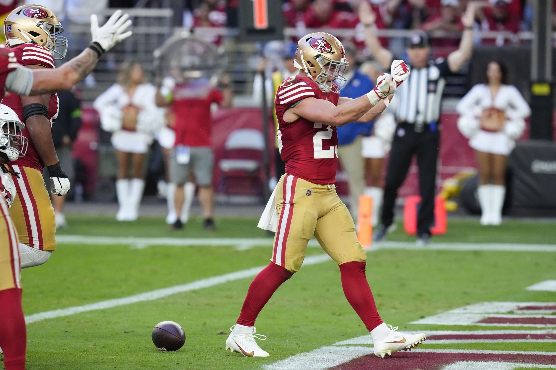 McCaffrey has rushed for 1,292 yards and 13 rushing touchdowns, while also adding 509 receiving yards and seven receiving touchdowns.