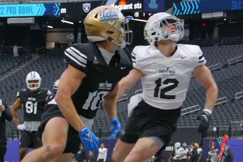 Despite a pretty productive career for one of the more well-recognized programs on the West Coast, Philips was looked at as a day-three prospect and did not receive a Senior Bowl invite. Instead, he made his way to Las Vegas and went on to look borderline uncoverable throughout four practice sessions. What was apparent from the start was his understanding of how to set up defenders as a route-runner, with the way he stemmed them initially and then varied his pacing, such as hitting sudden bursts, to make it hard to anticipate which directions he might take them. A lot of times, he almost literally stepped on the toes of the DB, got them to freeze those, deceived with his body-language and then created separation out of his breaks.
