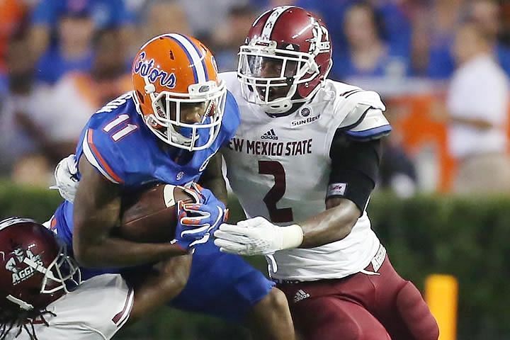 After going from a big high school program in Miami to a rather small school in New Mexico State, Hanks earned playing time right away and was a productive four-year starter for the Aggies. He recorded almost 400 tackles, with 43.5 of them for loss, 11 sacks, eight INTs, 14 pass breakups and seven forced fumbles. He has gotten a lot bigger every year during his collegiate career and is now up to 235 pounds to fill his 6’3” frame.