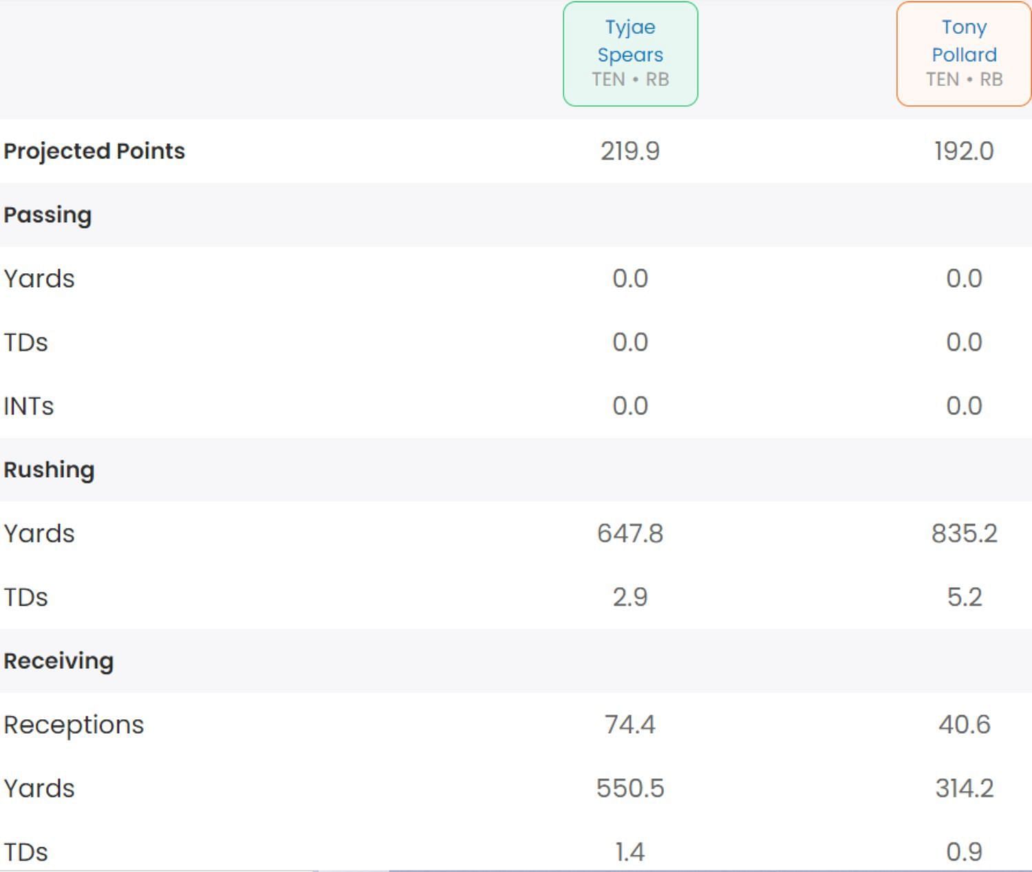 In perhaps one of the biggest upsets ever predicted on Sportskeeda's fantasy football tool, Tyjae Spears handily defeats Tony Pollard: