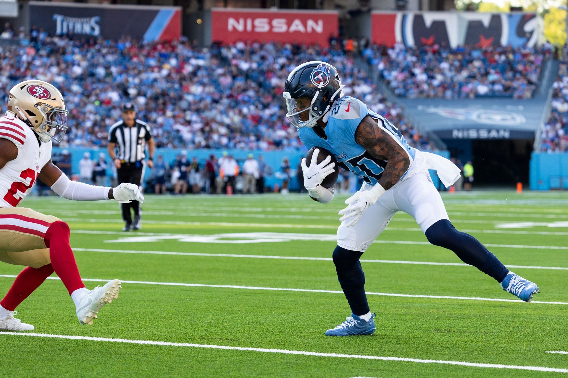 While he is outrushed, the sophomore manages to wrest control in the receiving department with 550.5 yards in the air out of 74.4 catches – significant statistics for a running back – one that may even help him get a surprise starting role on the field when the Titans take on Caleb Williams and the Chicago Bears at Soldier Field on Sunday.