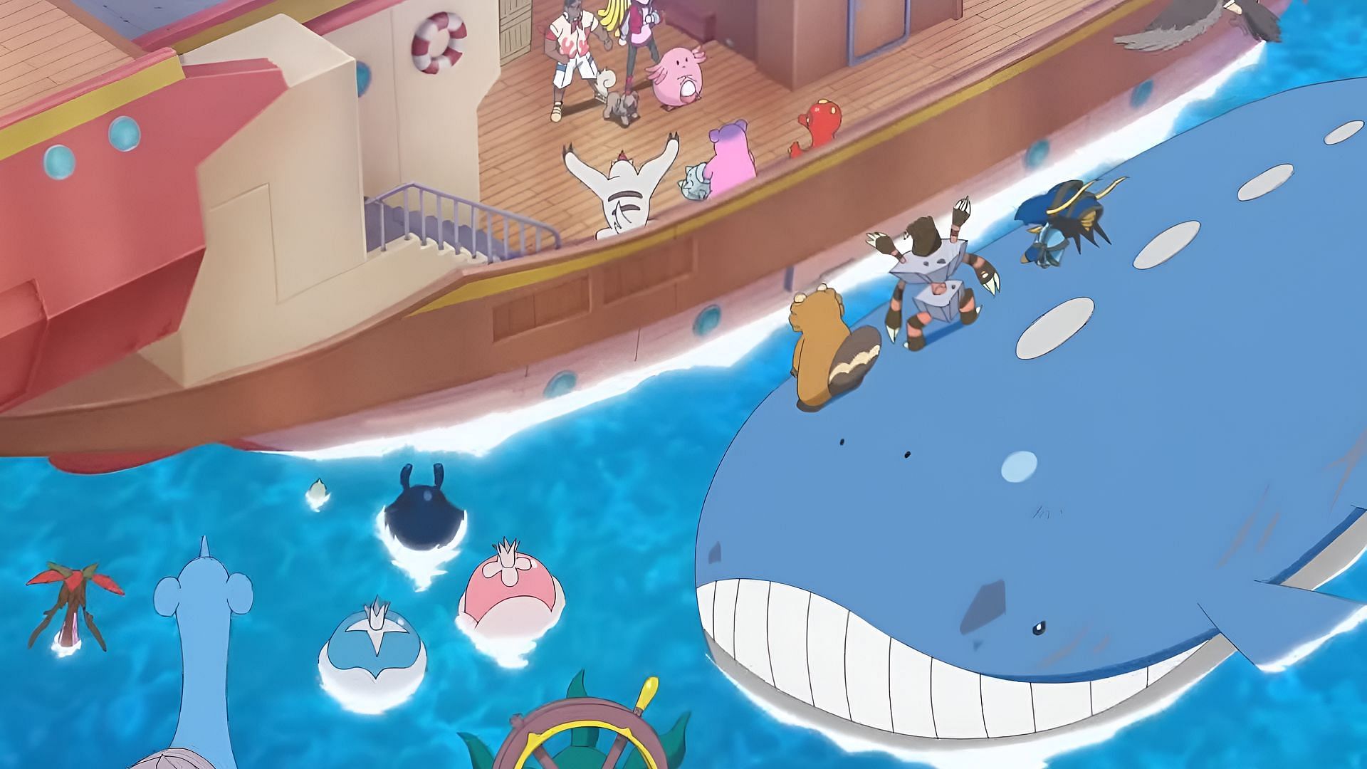 Picking up from Pokemon Horizons Episode 31, Terapagos is happy to see Lapras, which Liko believes to be one of Lucius's companions. However, Lapras turns away and joins the Waillord, carrying various Pokemon on its back. It then orders its comrades to board the Brave Olivine like Ambipom and Toedscruel did in the previous episode.