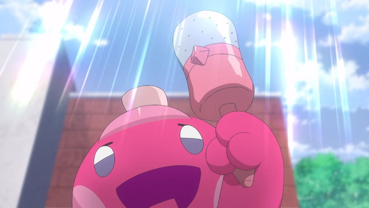 Dot wonders if the iron consumption is connected to Tinkatink, but this isn't the case, as the Fairy/Steel-type Pokemon is shown boarding the airship moments later. It runs into Alolan Muk and runs away in tears at its presence before being scared by the Slugma and Carkol in the engine room. It also runs into Metagross and Elekid, which it flees from while crying.