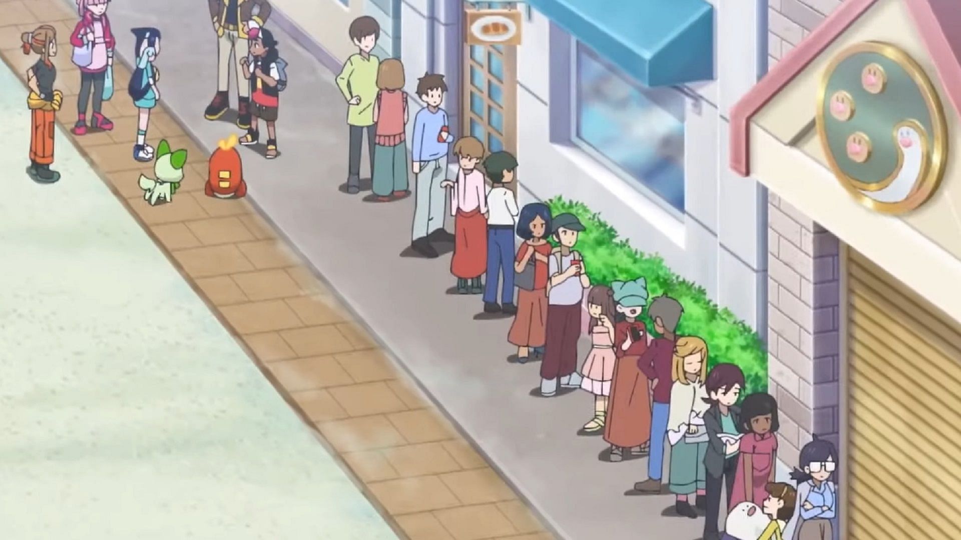 This Pokemon Horizons Episode 43 recap begins with the Rising Volt Tacklers doing a bit of shopping, and a line emerges for some limited-stock Sea Diglett Manju, which Friede and Roy are patiently waiting for. Mollie tells the two that they're free to wait as long as they've shopped for necessities already, to which Friede and Roy admit that they haven't done so.