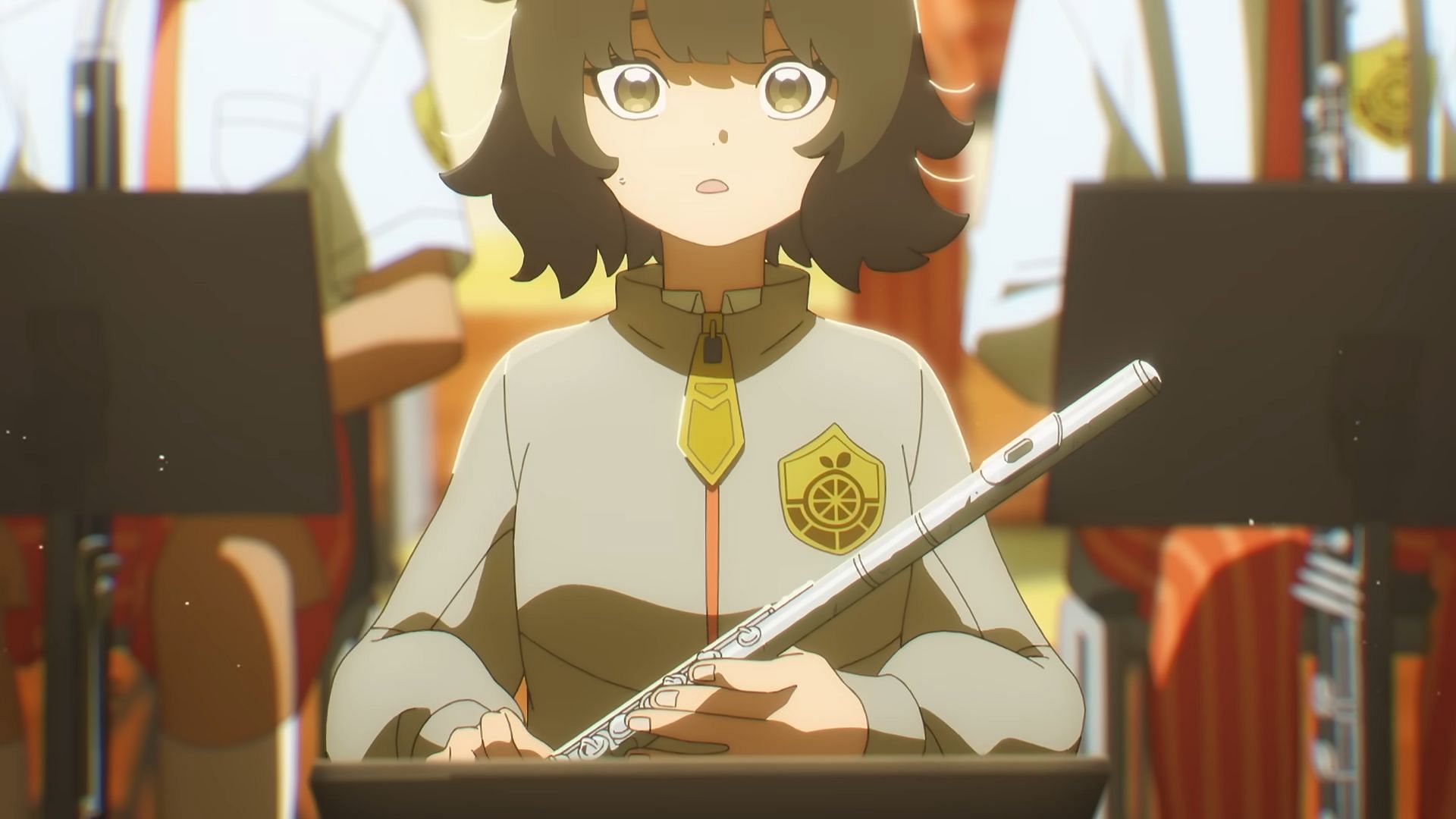 Paldean Winds begins with multiple shots of Mesagoza City and various people and Pocket Monsters throughout the Paldea region. The Great Crater of Paldea is briefly shown, as well as an orchestra at Naranja Academy. A student at the academy is later seen alongside a Fuecoco at Glaseado Mountain, saying goodbye to the case containing her flute.