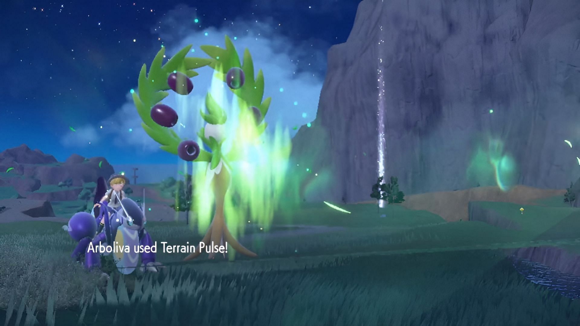 - Arboliva: On the first three turns, use Energy Ball to build Tera Orb charge. Arboliva's Seed Sower ability will naturally activate whenever Arboliva is hit, creating Grassy Terrain for five turns. Once you have enough charge, Terastallize and utilize Giga Drain and Terrain Pulse to deal damage, though the latter is preferred as Giga Drain is more vital for healing. Sunny Day is also added to the moveset to reduce the power of Pikachu's Surf move and negate its Rain Dance when necessary.