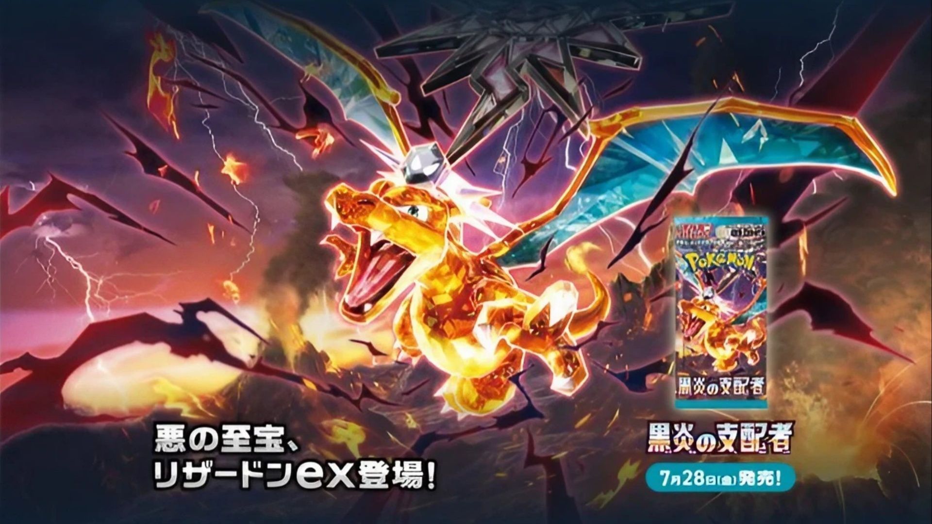 The Pokemon TCG Ruler of the Black Flame set will release in Japan on July 28. Packaged as Obsidian Flames, it will release around the world on August 11.
