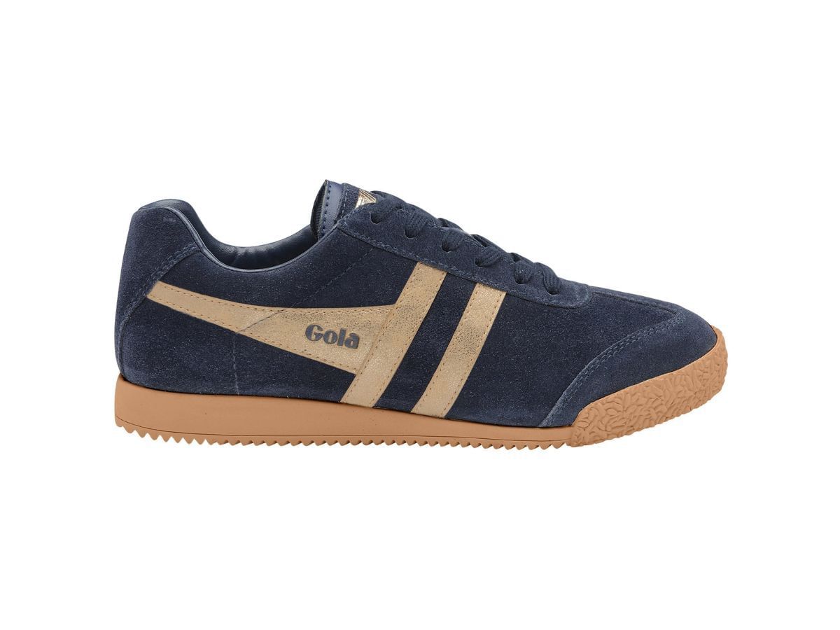 These feminine sneakers are one of the brand's most sought-after releases. These kicks embody a laid-back but elegant design, with the upper of the shoe primarily enveloped in a deep navy blue suede hue, contrasted by the metallic gold prints strategically embellished on the sneakers, giving a flair of luxury. The traditional lace-up closure also complements the predominant navy blue color, as well as ensuring an adjustable fit.