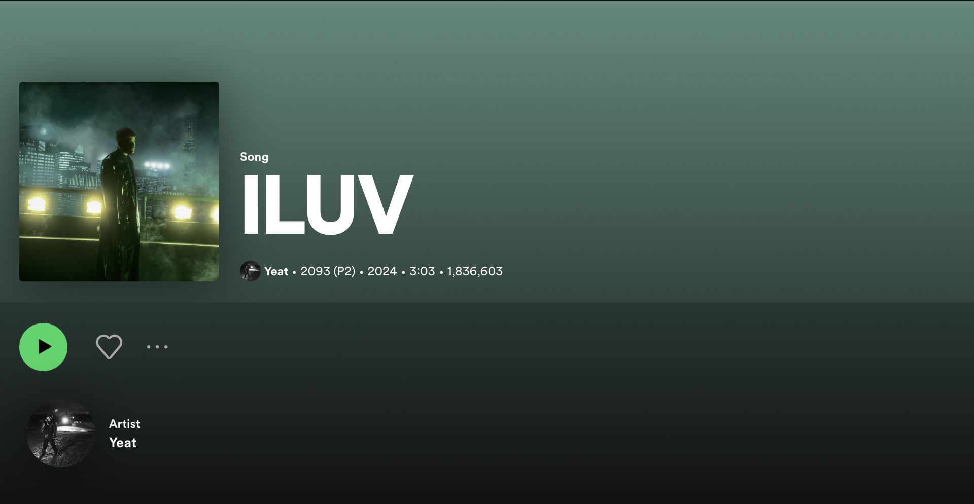 ILUV features reoccurring adlibs of Yeat whispering "I love," as he acknowledges how he's aware that most people don't like his music.