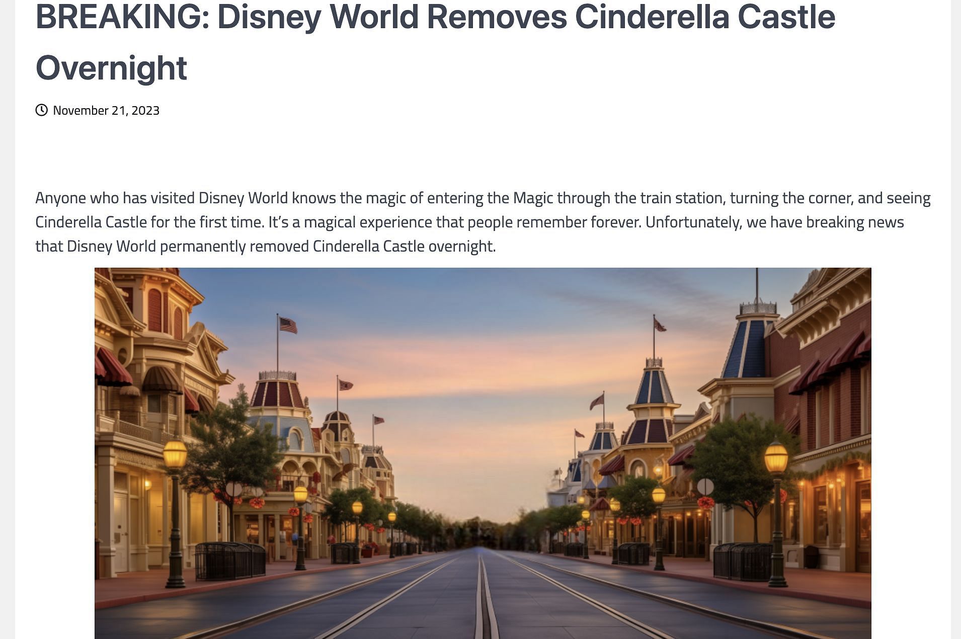 An article about Disney World removing the popular Cinderella Castle has been going viral on social media and has left netizens shocked and concerned. The article was published on November 21, 2023, by a website called Mouse Trap News.