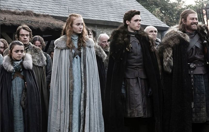 Game of Thrones is set on the fictional continents of Westeros and Essos and follows several story arcs throughout the course of the show. The series starts when House Stark, led by Lord Eddard “Ned” Stark, played by Sean Bean, is drawn into schemes surrounding King Robert Baratheon played by Mark Addy.