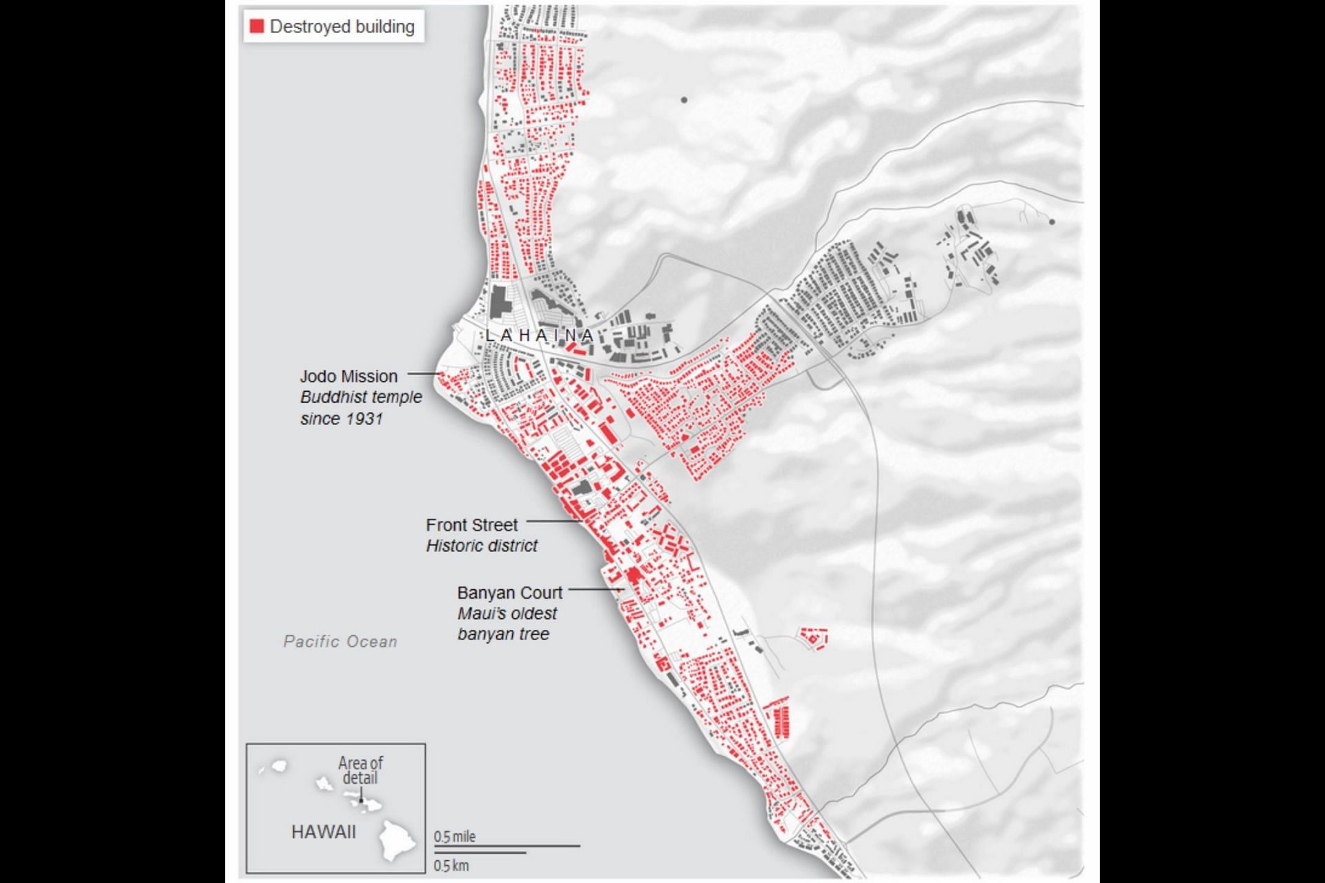To make everyone aware of the buildings that have burned to ashes, the Wall Street Journal has shared a map of the town and marked specific areas in red to denote the destroyed buildings. Steve Lookner, one journalist, posted the image on X, which @flyastroapple shared for evidence and confirmed that the Old Lahaina Luau was untouched by the wrath of the wildfire that broke out in Maui on Tuesday, August 8.