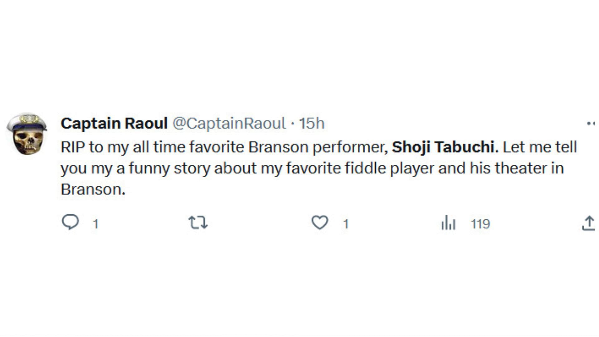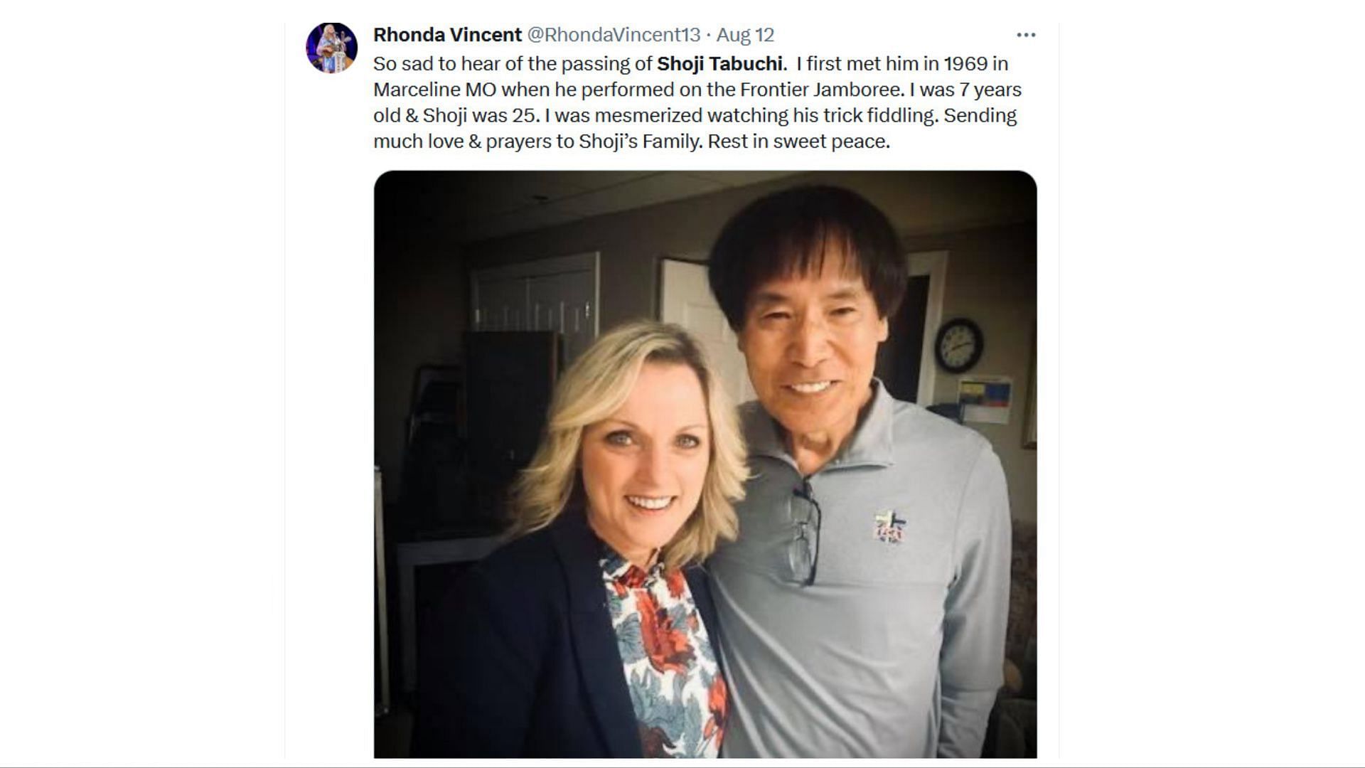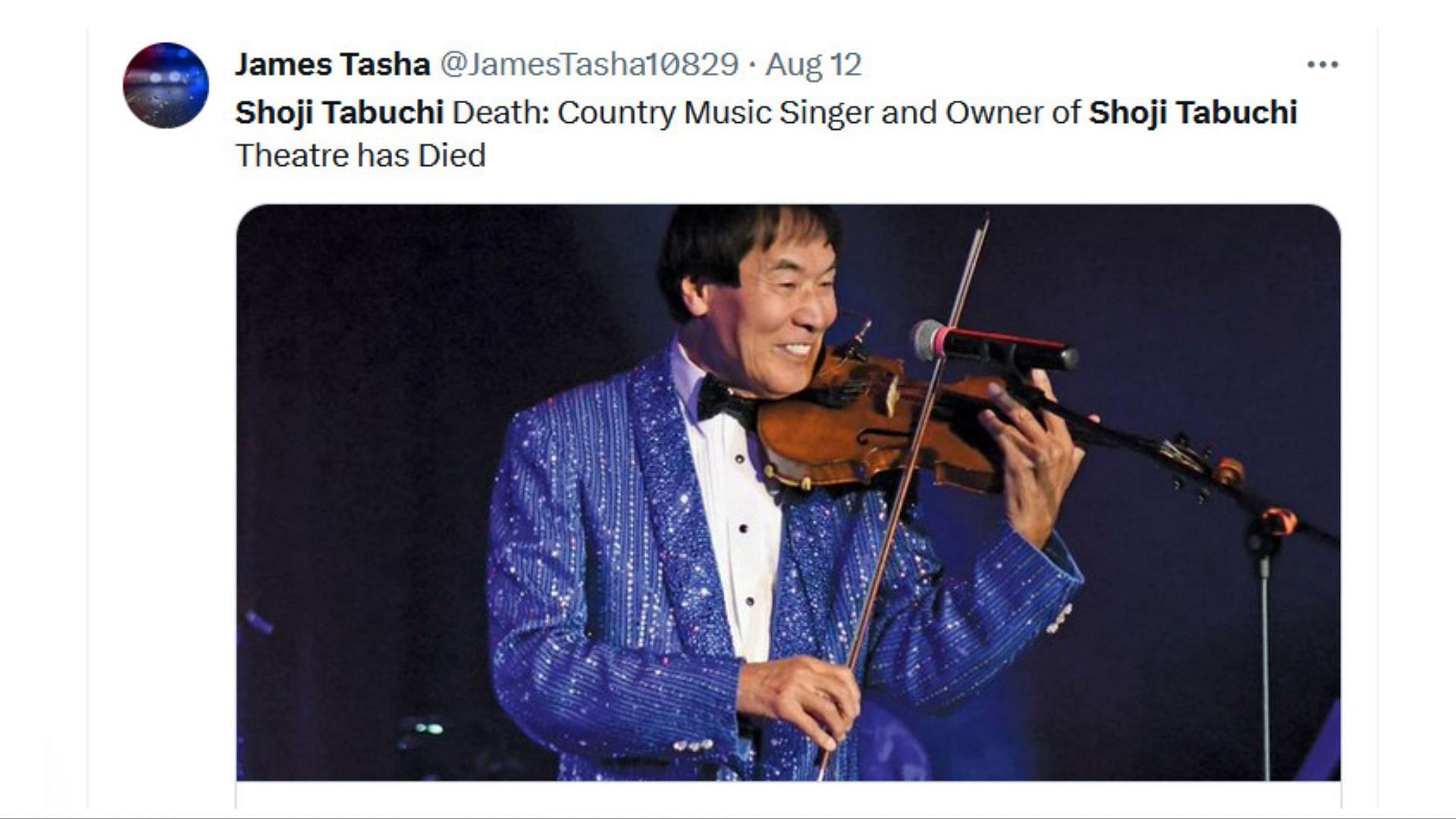 Tabuchi was a Japanese-American country music fiddler and vocalist who played at his theatre in Branson, Missouri, which was called the Shoji Tabuchi Theatre.