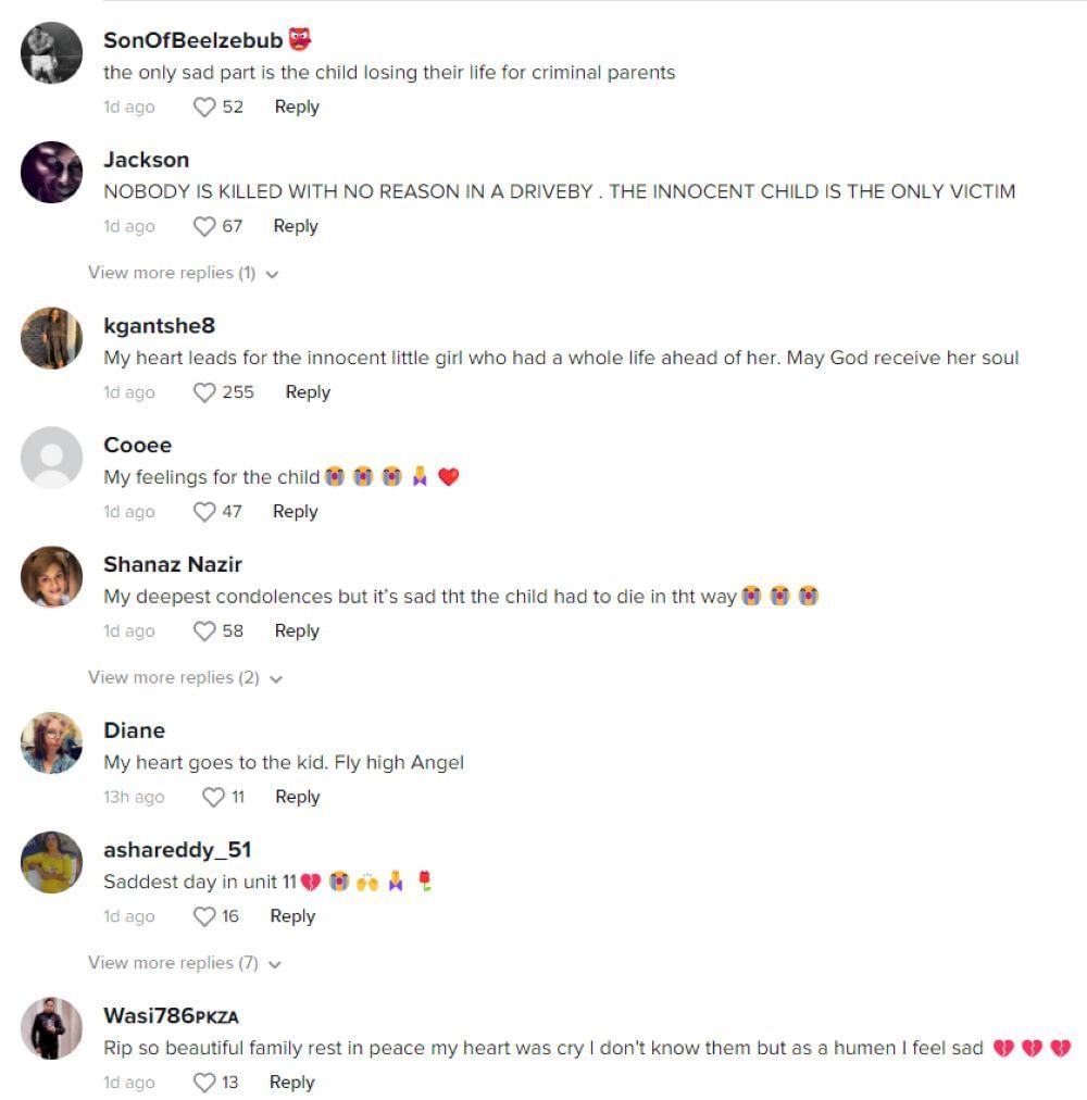 Internet users were disheartened to hear about the family that was killed. Many were shaken to hear that a young child passed away during the attack. TikTok was flooded with tributary messages. A few comments online read: