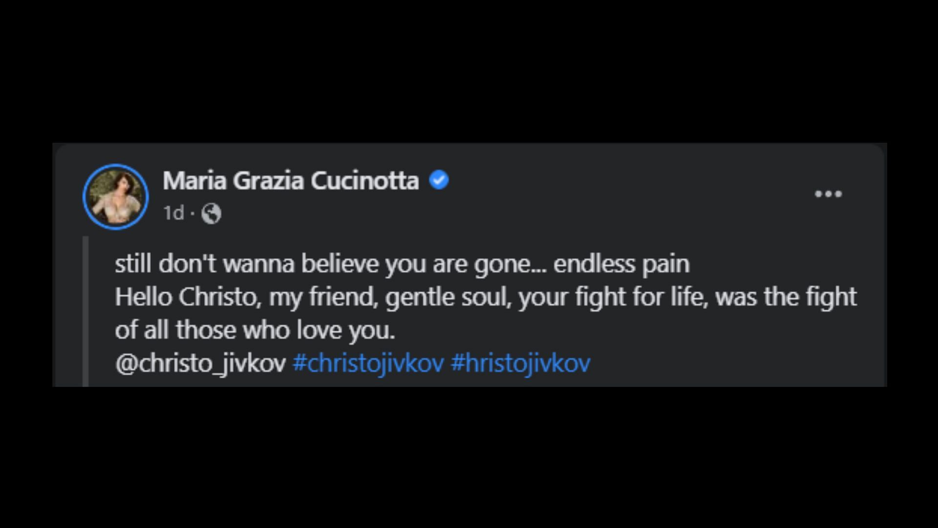 Another actress and television presenter, Eliana Miglio, also paid tribute to Jivkov by posting a still from one of his projects and writing: