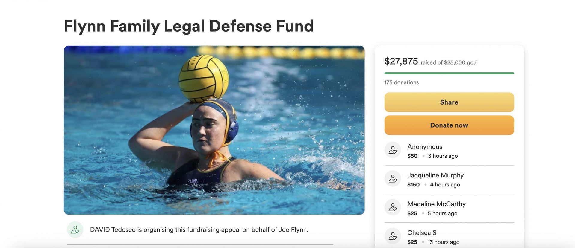 David Tedesco, a parent of one of Flynn’s water polo teammates, set up a GoFundMe page for Nina on March 17 to collect money for her legal defense. The about section of the GoFundMe page reads: