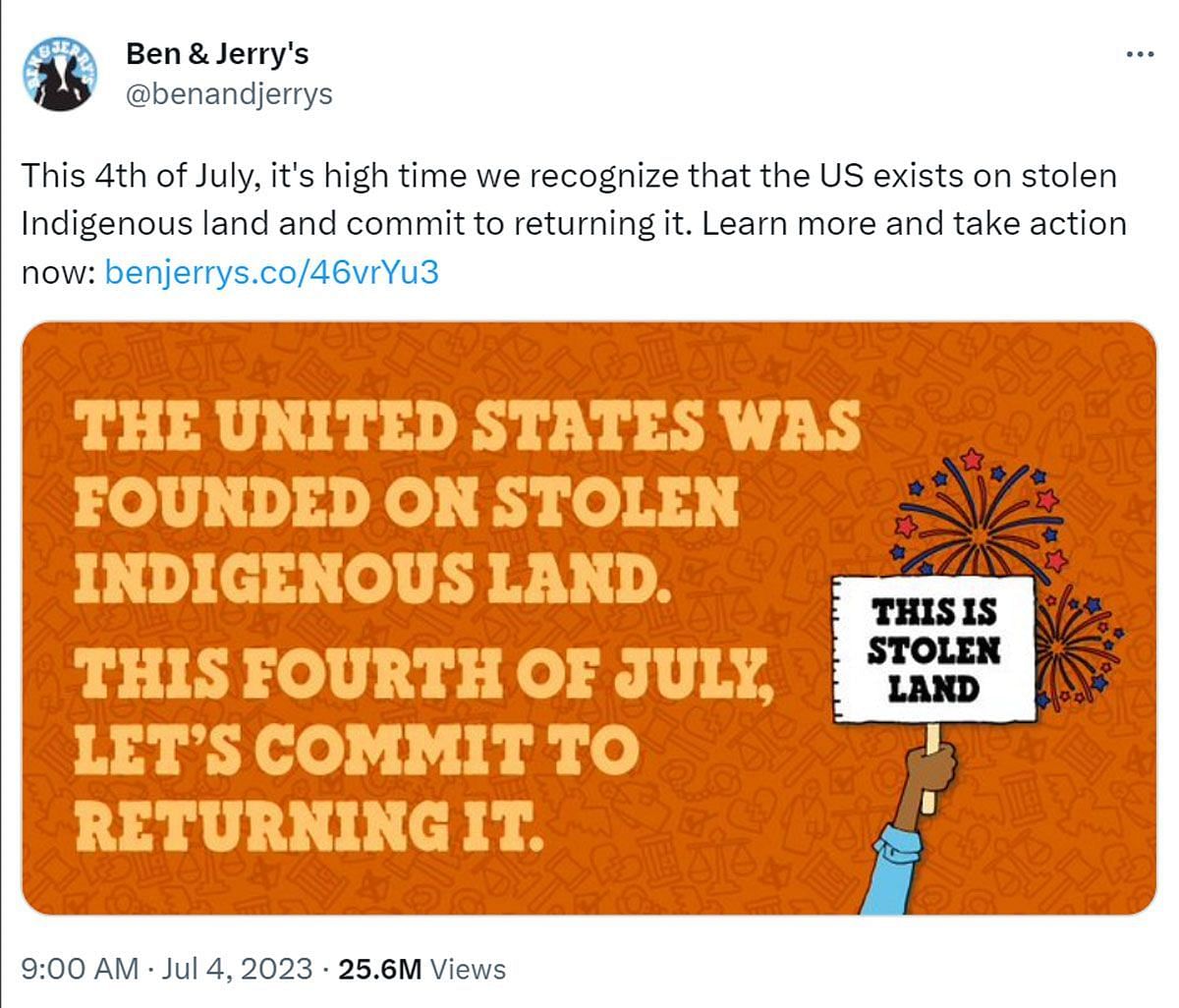Iconic American ice cream brand Ben and Jerry's is the latest company to face the wrath of the right-wing and conservatives after its controversial 4th of July message. The dessert brand shared a tweet stating that the U.S. was "founded on stolen indigenous land" and further asking people to "commit to returning it."