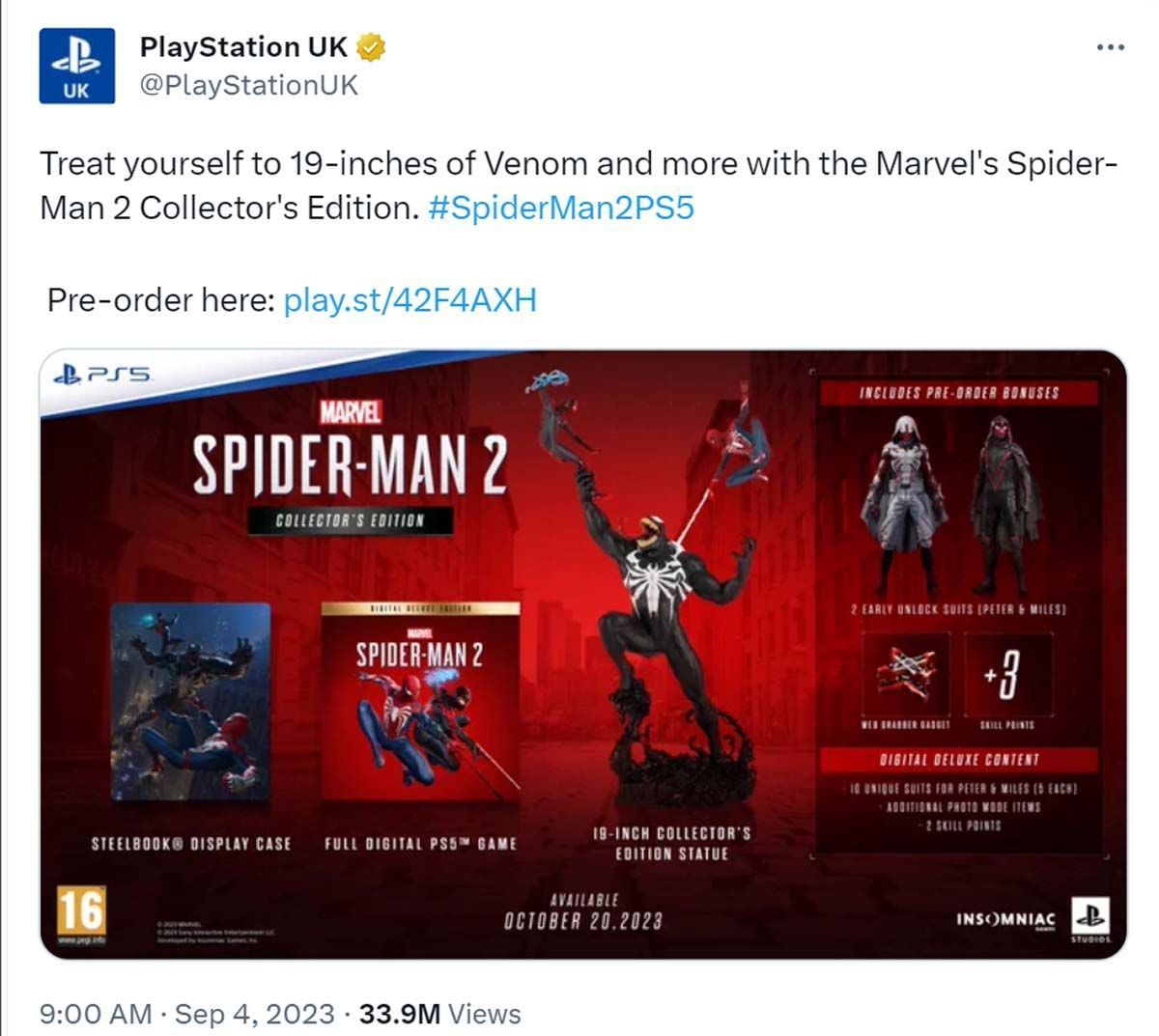 "Treat yourself to 19-inches of Venom and more with the Marvel's Spider-Man 2 Collector's Edition. #SpiderMan2PS5"