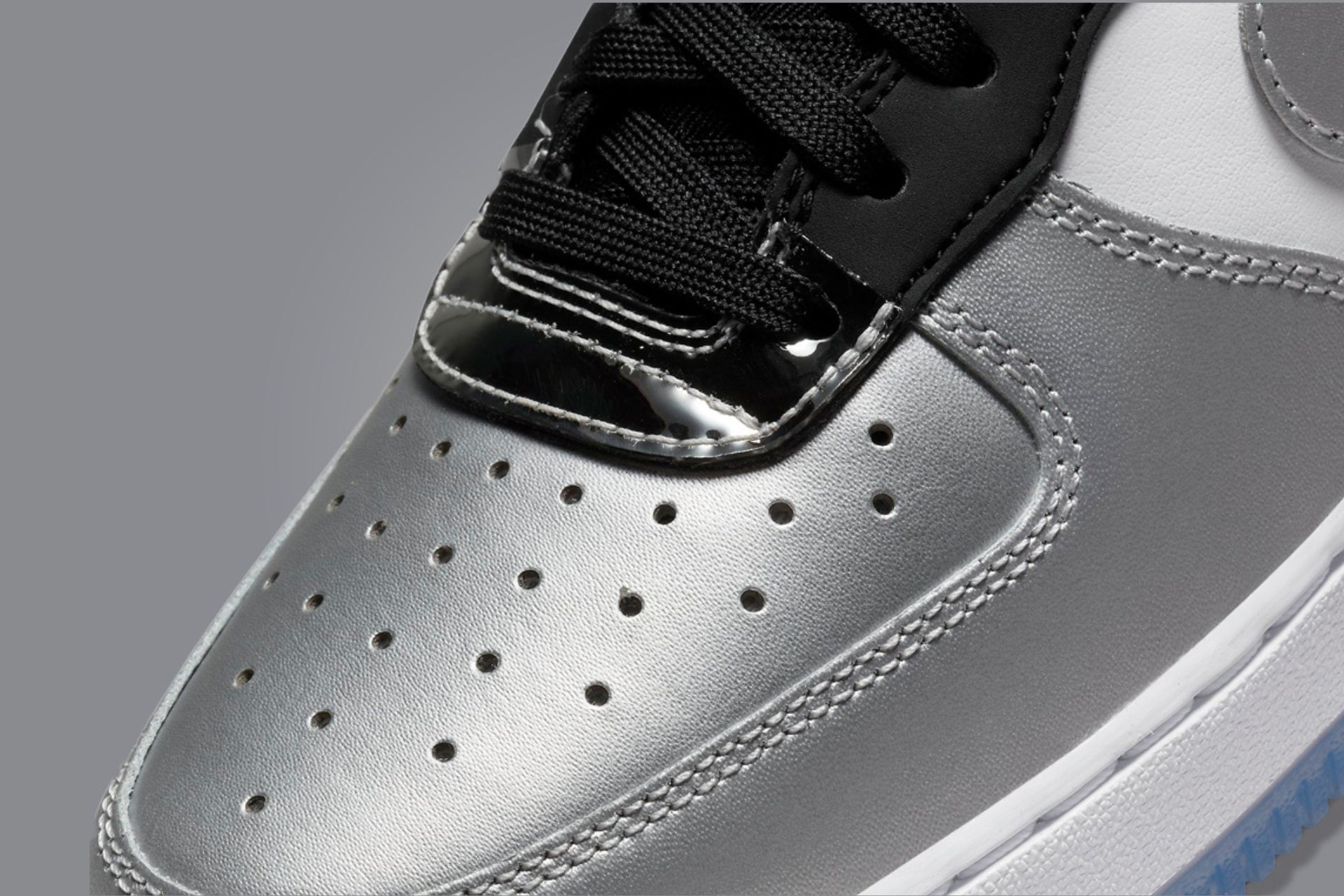 Nike Air Force 1 '07 Low shoes will arrive in “Metallic Silver Black” colorway with icy blue bottom