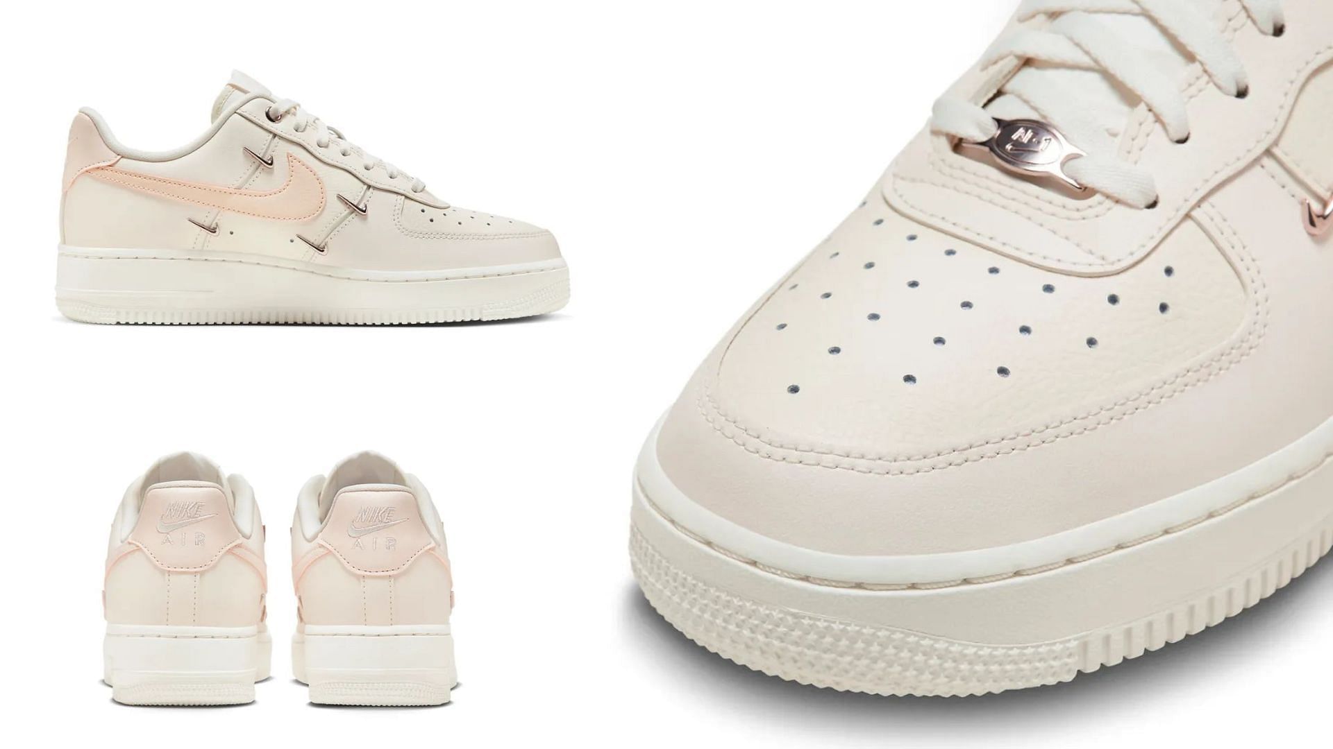 The new Nike Air Force 1 Low "Mini Swooshes" sneakers are all that you need to rock a dress and any party. This new colorway delivers the perfect amount of opulent flair with its rose gold swoosh embellishments, so they are exactly what you need to make that happen. Although the accurate launch details of the recently surfaced Nike Air Force 1 Low "Mini Swooshes" sneakers are not disclosed by the shoe manufacturer, they will potentially hit the footwear market in the coming weeks of 2023, as per early sources.